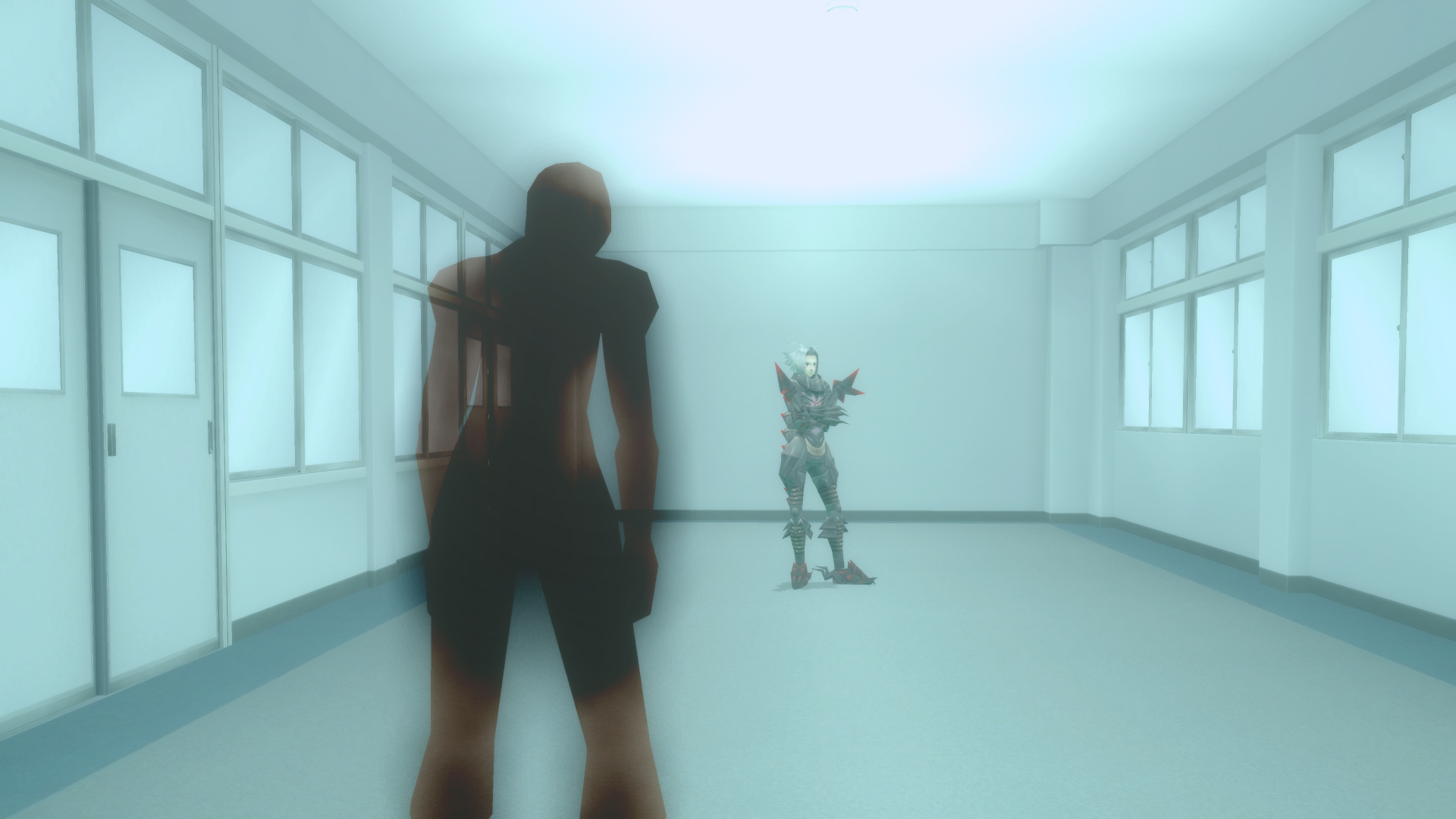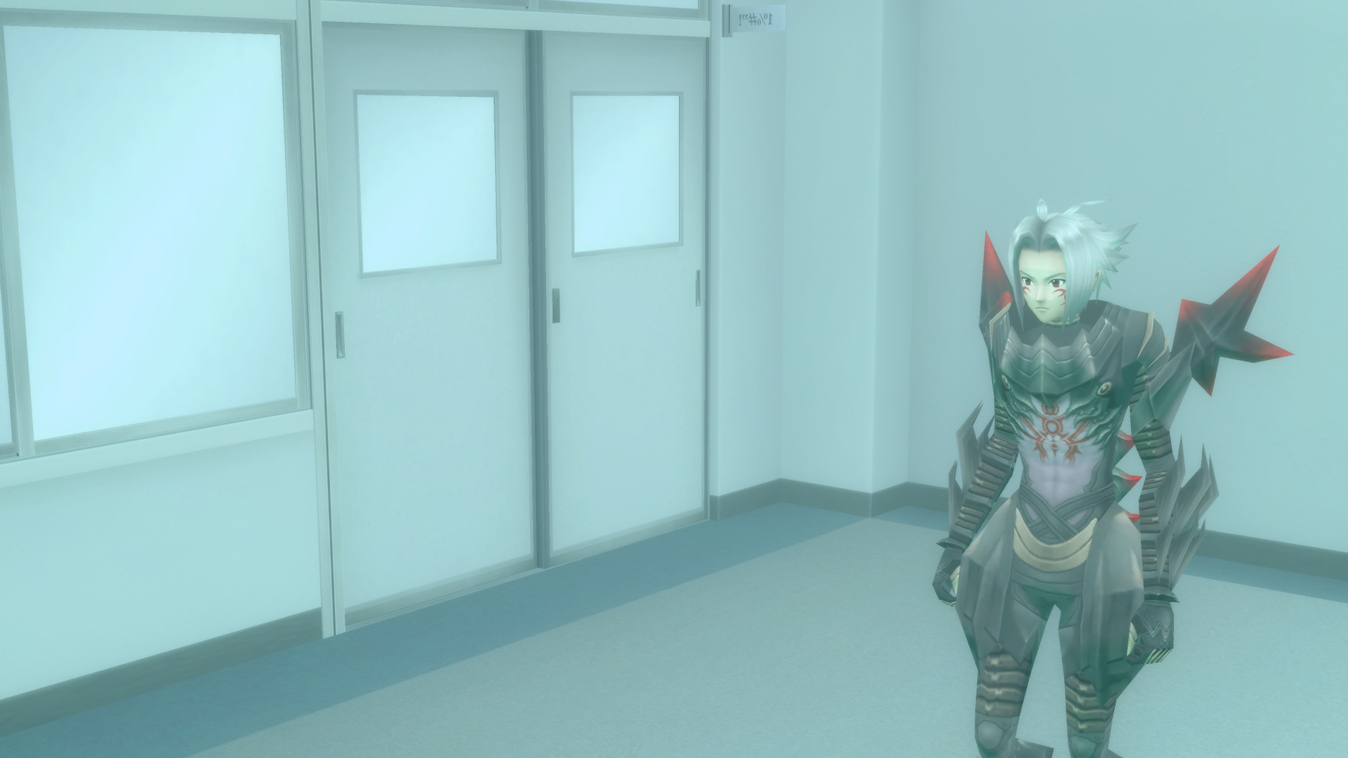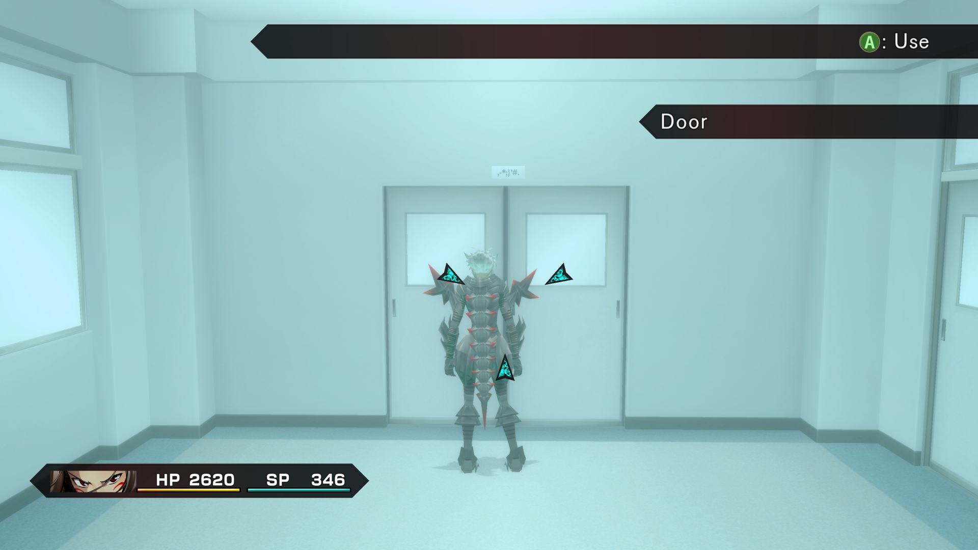 door ahead has a weird, white glow