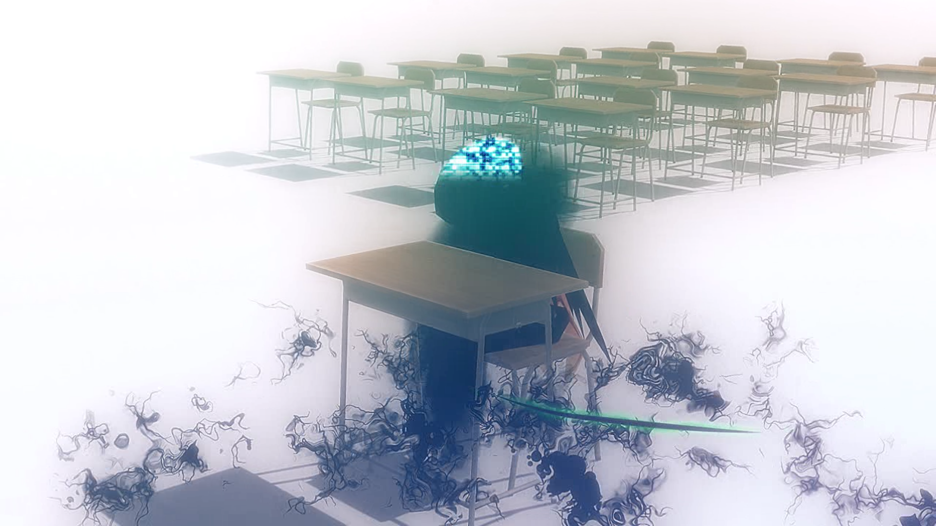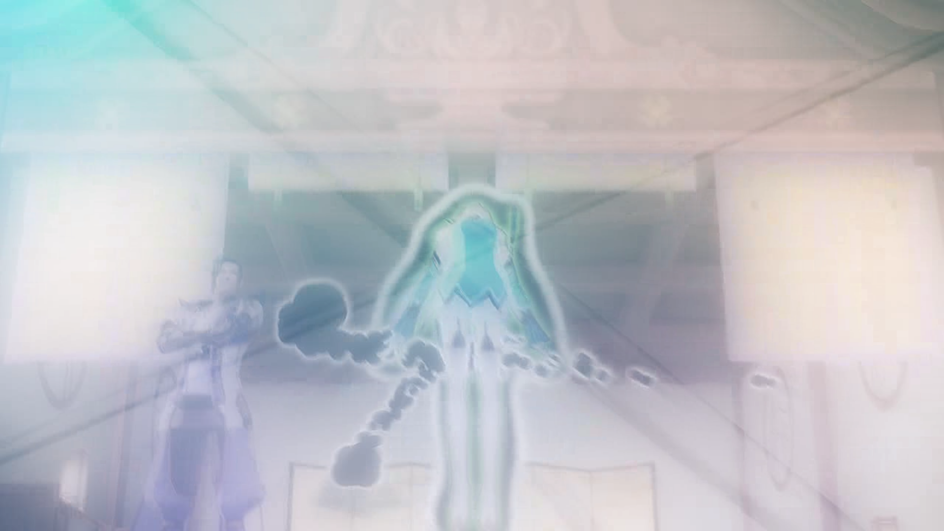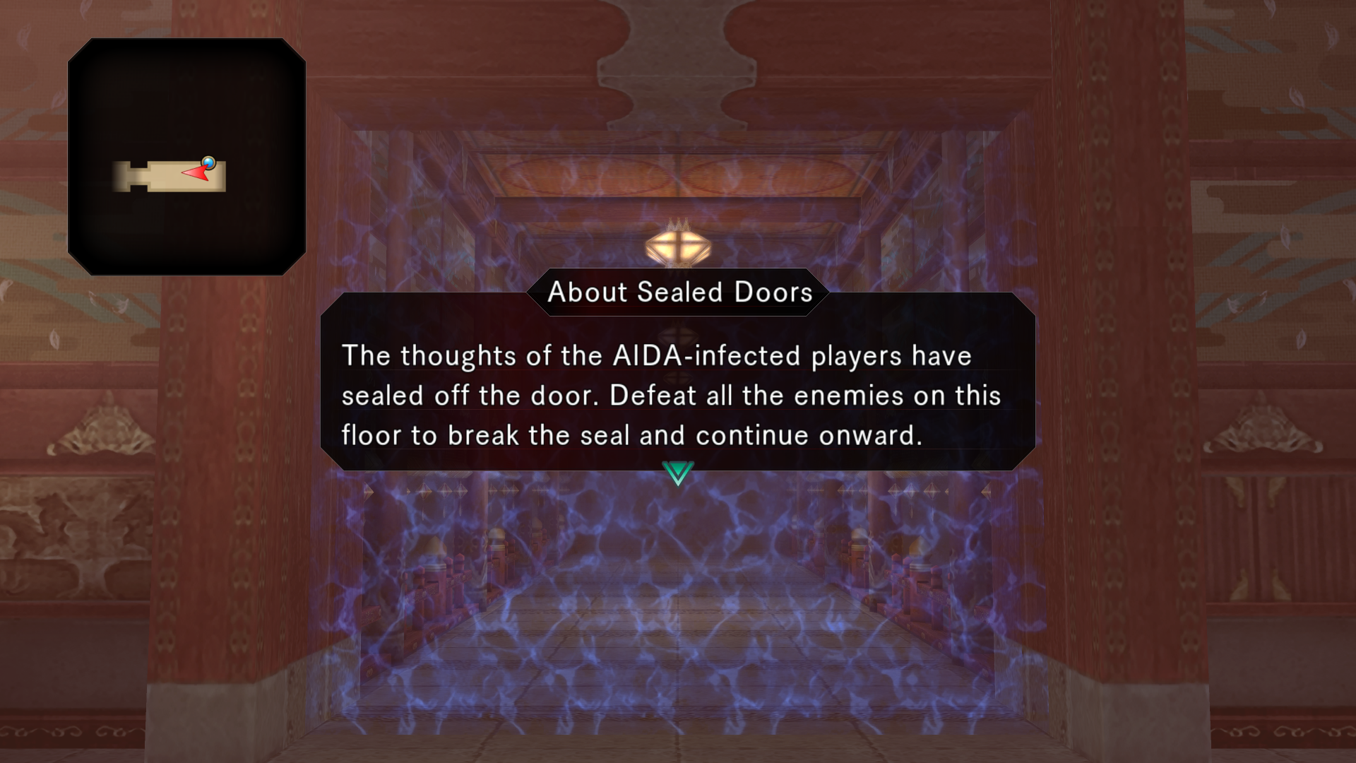 door ahead has a weird, white glow