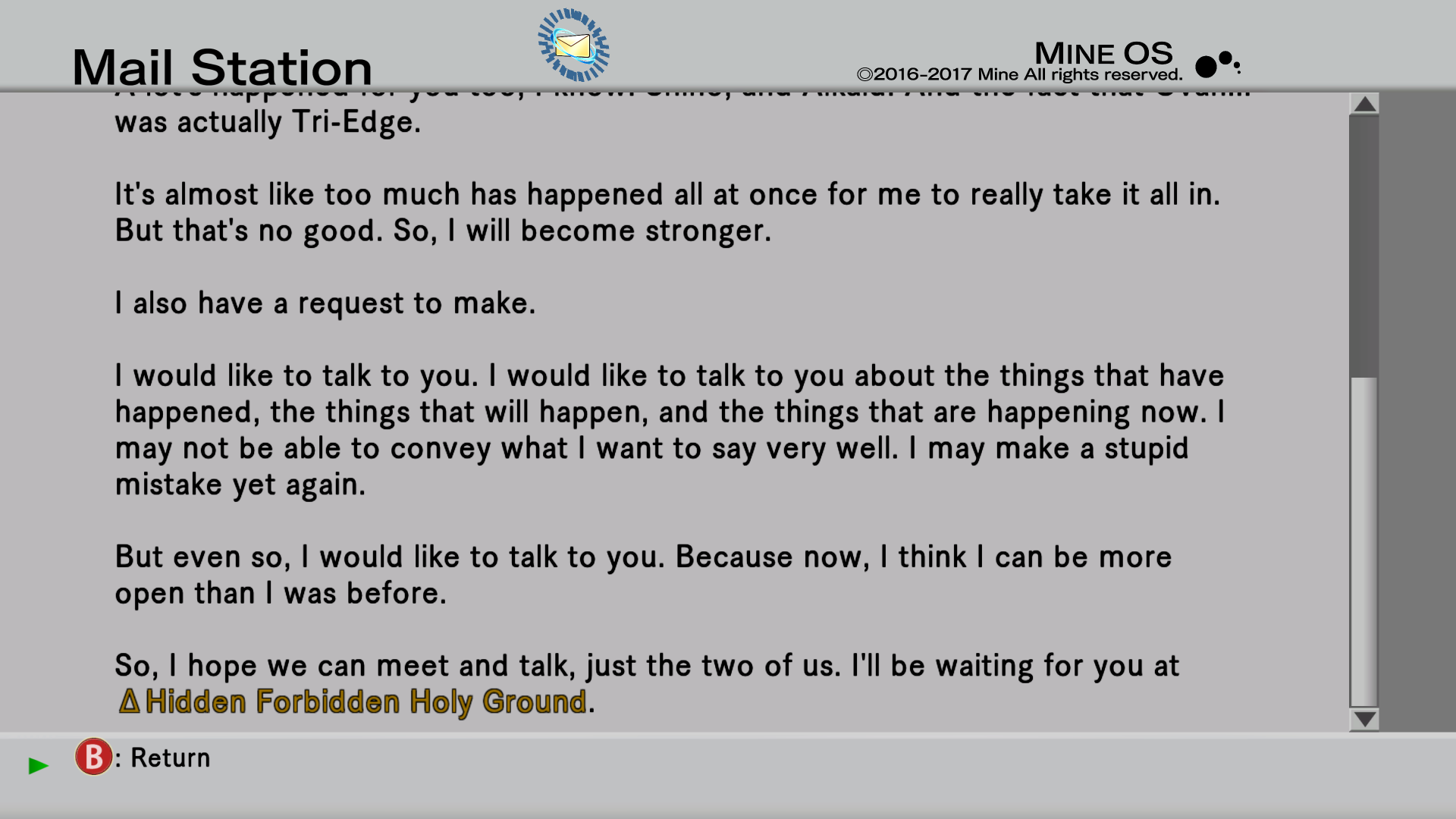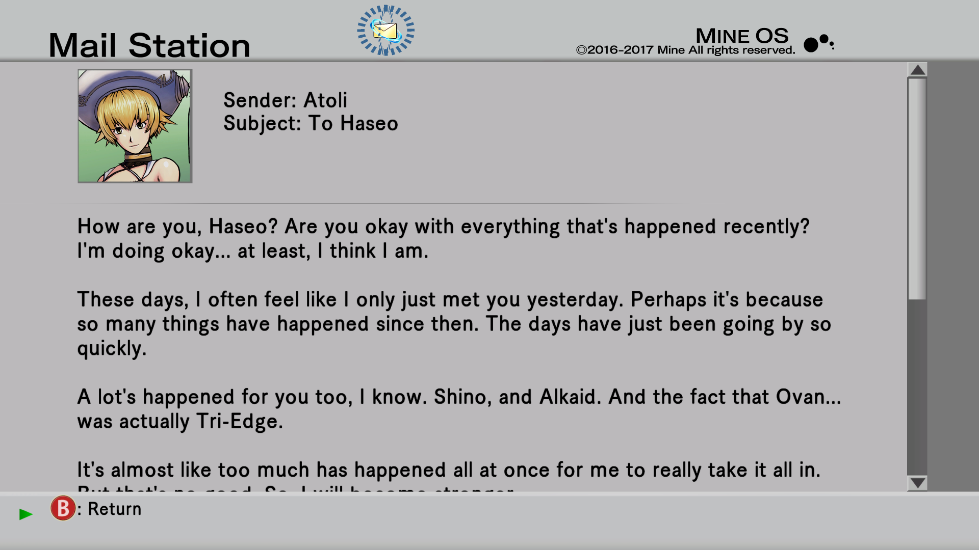 But yeah I think if you do this exact ending, just immediately teleport to the Ovan fight, skip Yata's exposition, and then jump to Atoli's e-mail and the final scene