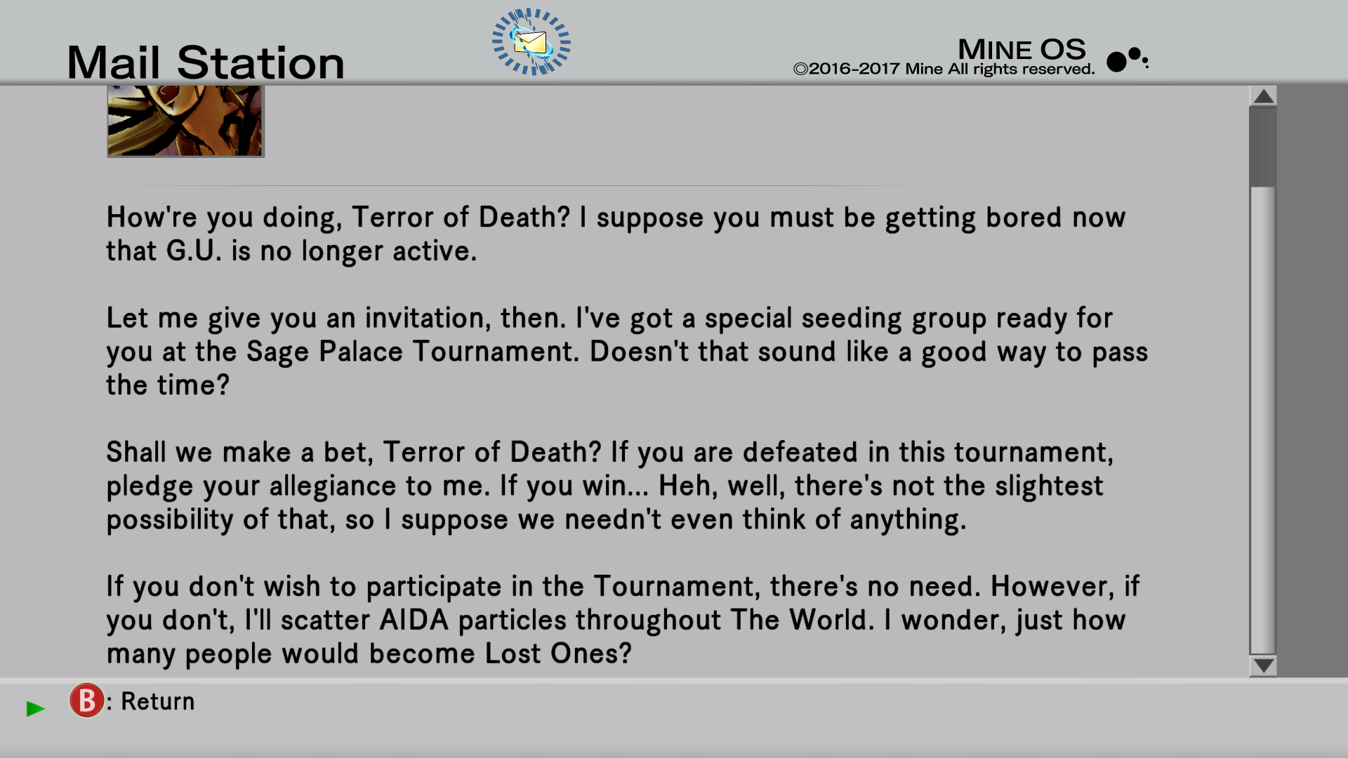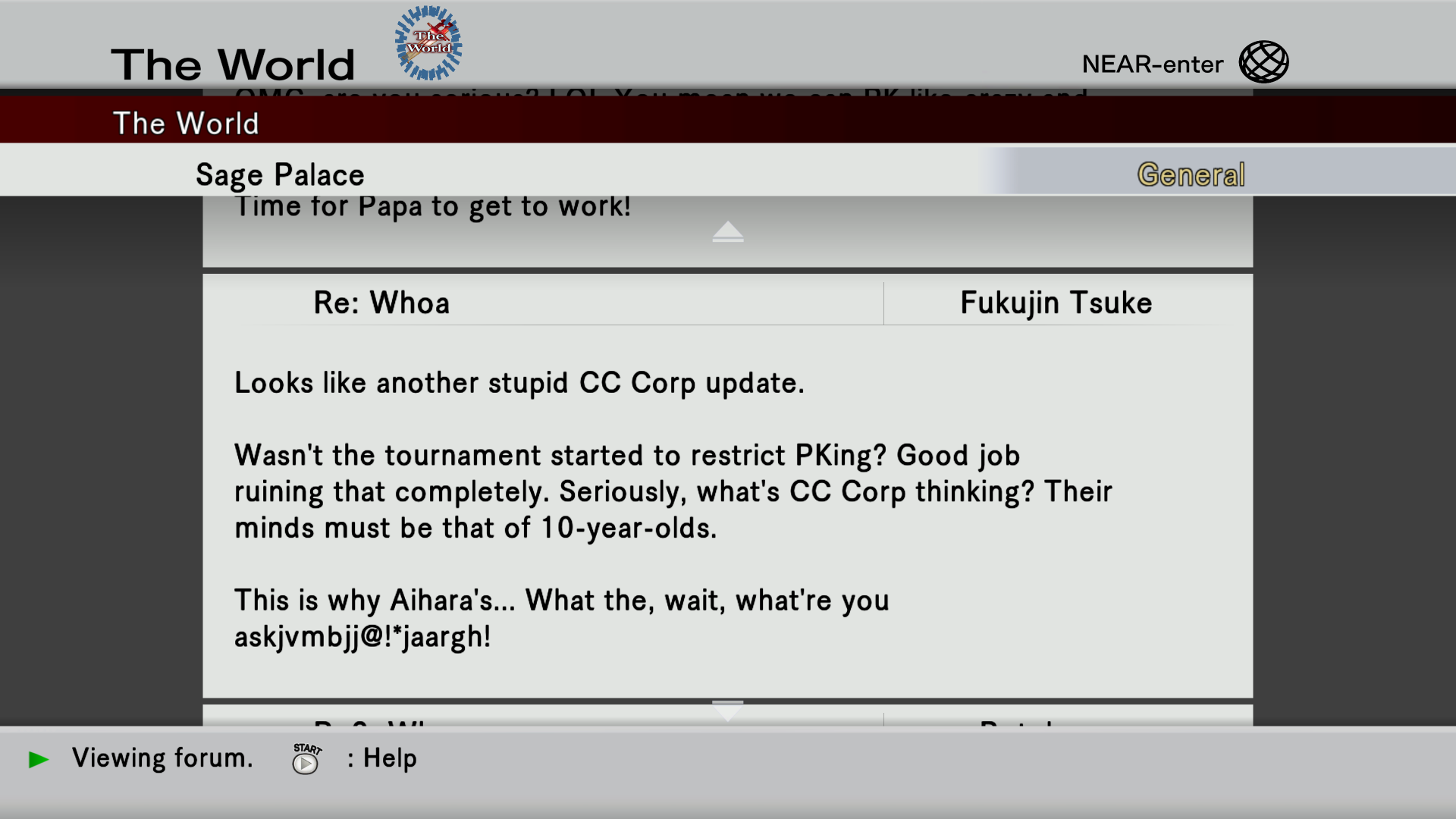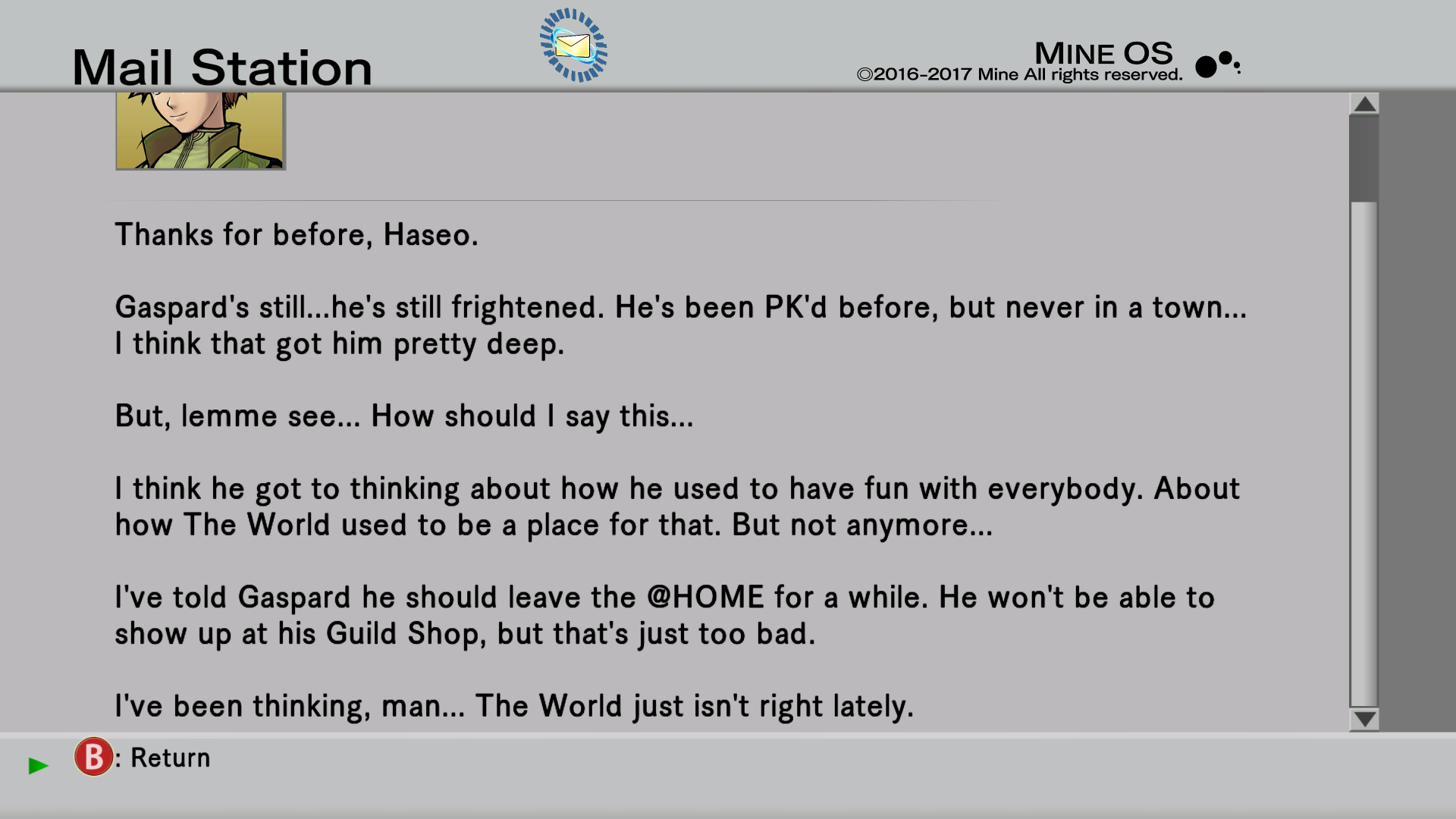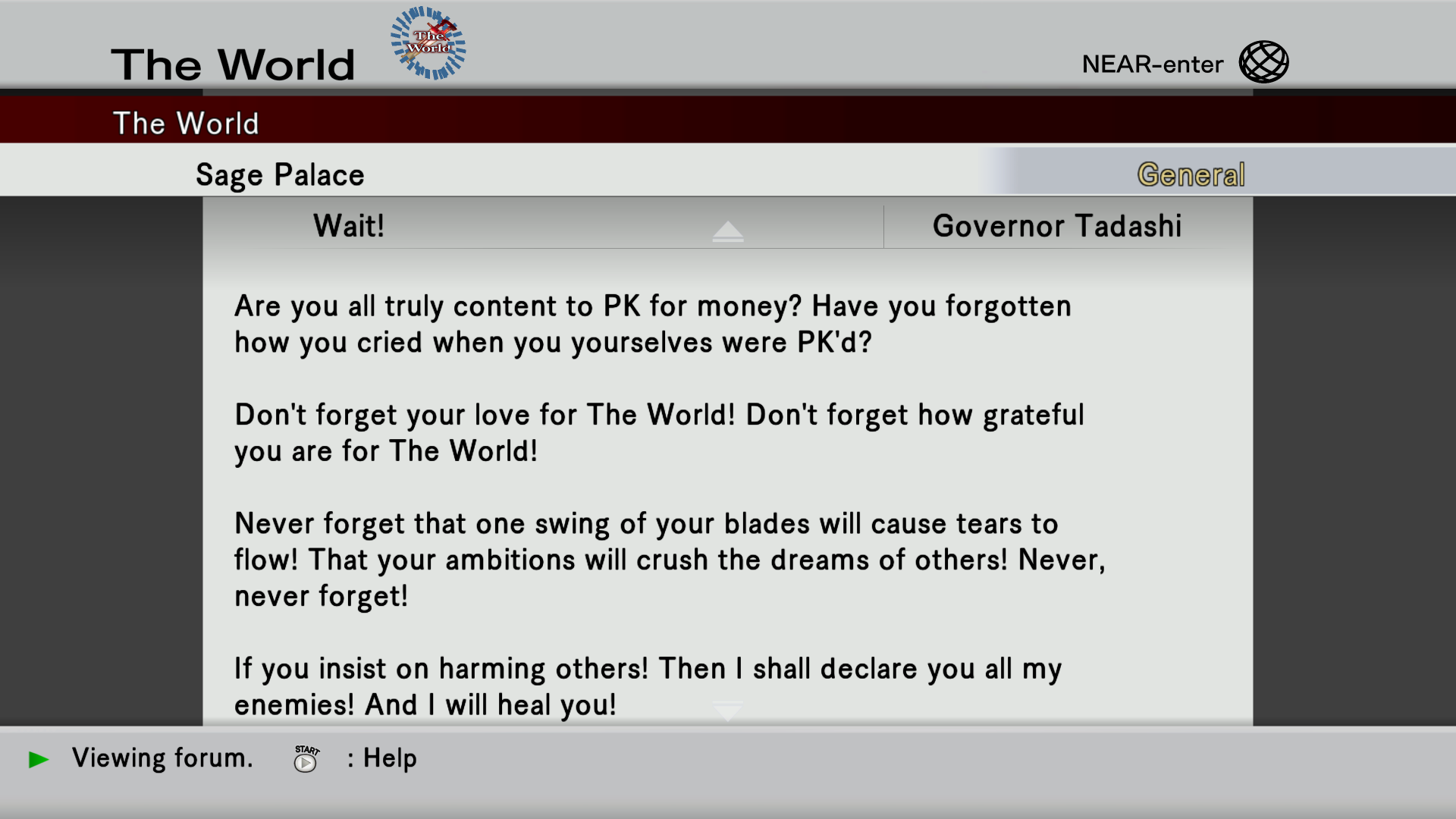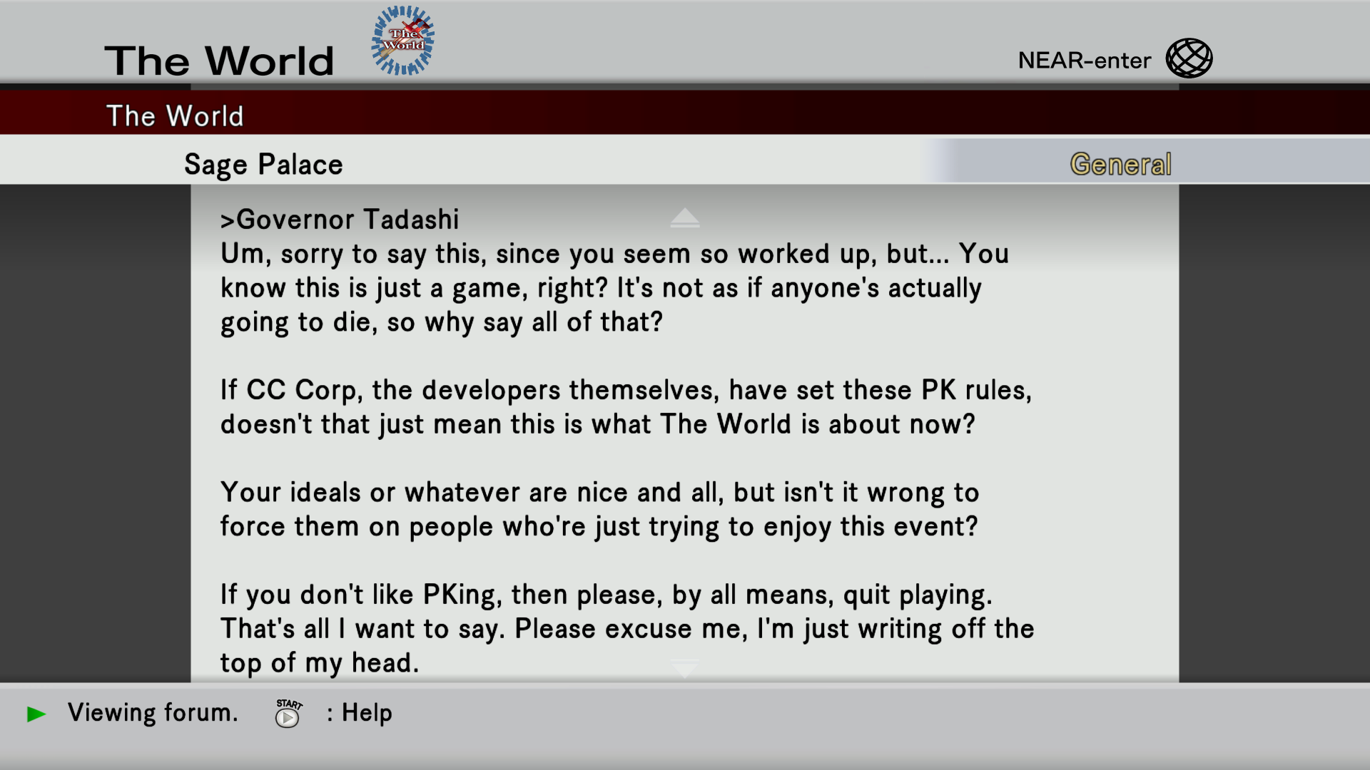 Seven years ago during 2010 while Kurogai was still an intern he often played with the younger Ryou Misaki [Haseo's player] who was once recovering from an experience with paralysis due to a long term coma. Kurogai started The World to learn about the effects of internet games on the human brain and would later join the arena as the best place to observe people while becoming an arena champion as he proceeded with his research.