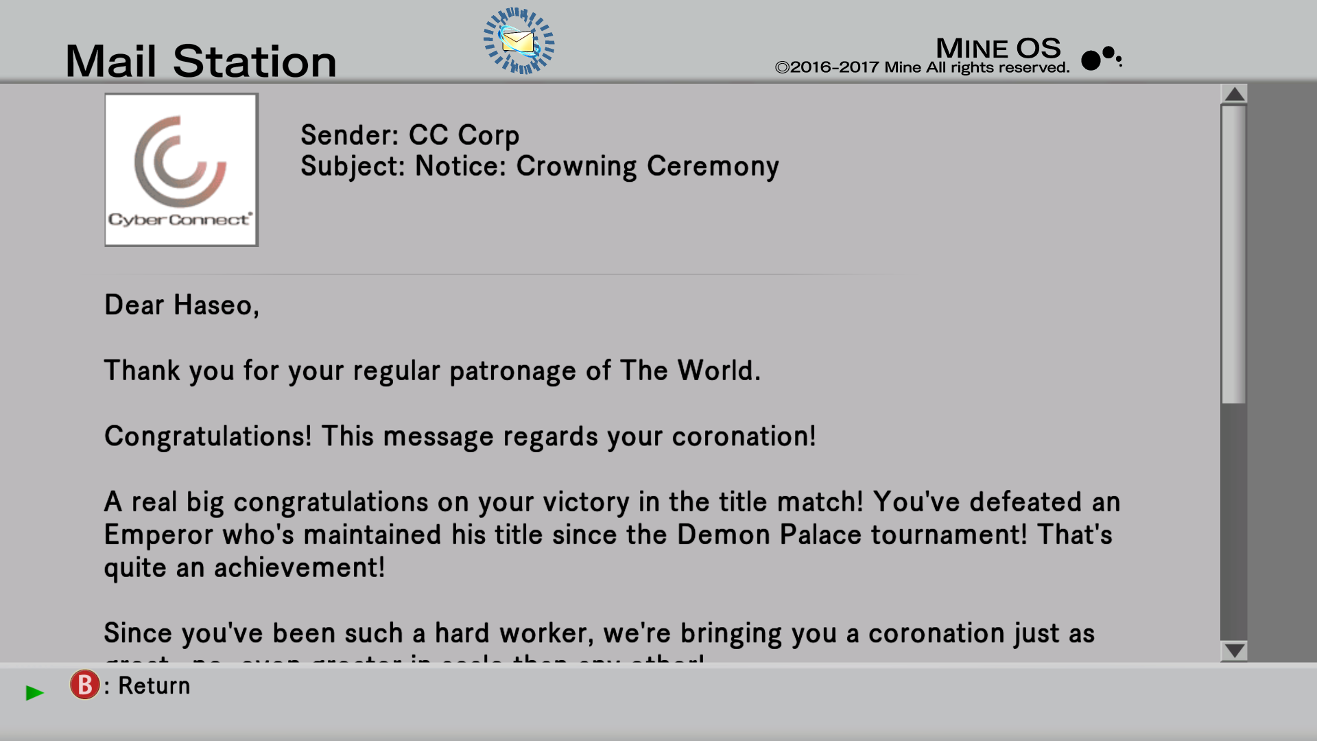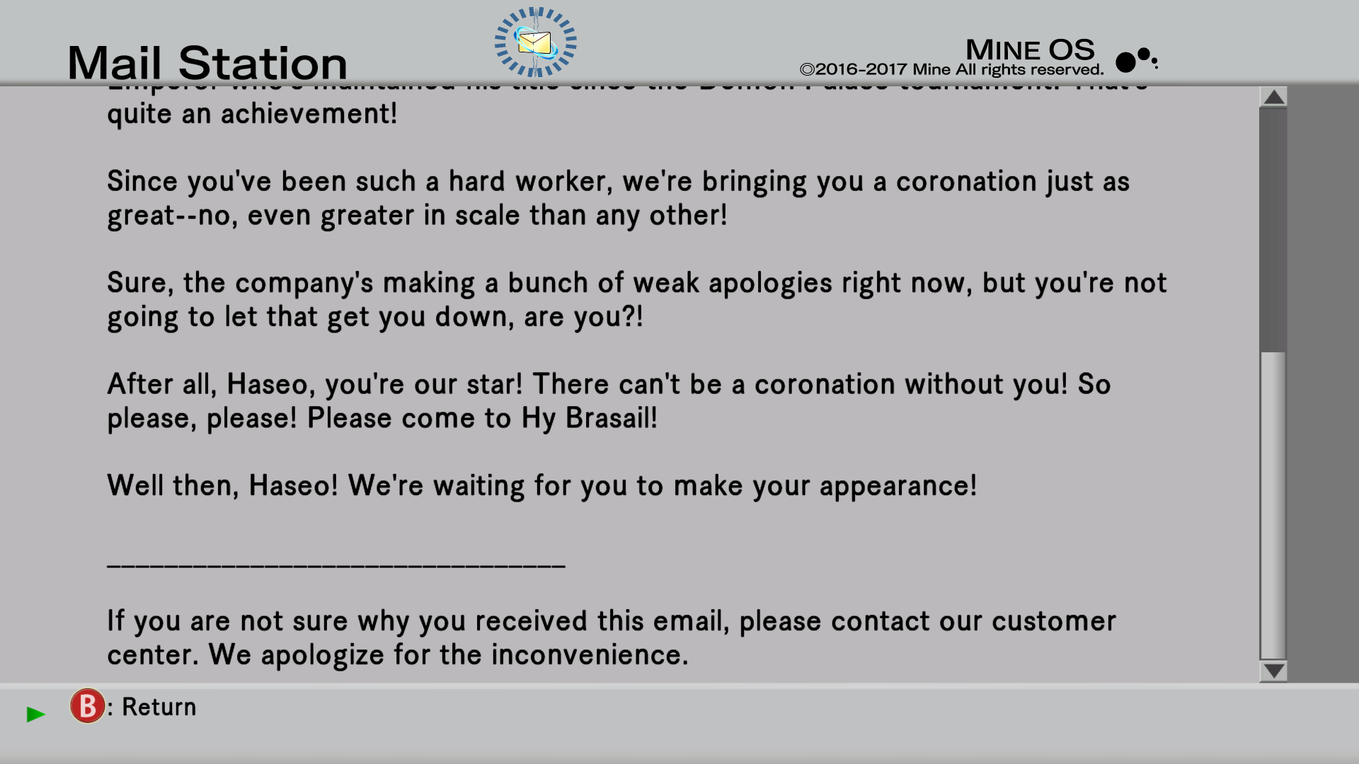 This is the official e-mail from CC corp congratulating us on winning the tournament and to come to the crowning ceremony as usuall.....wait, what?