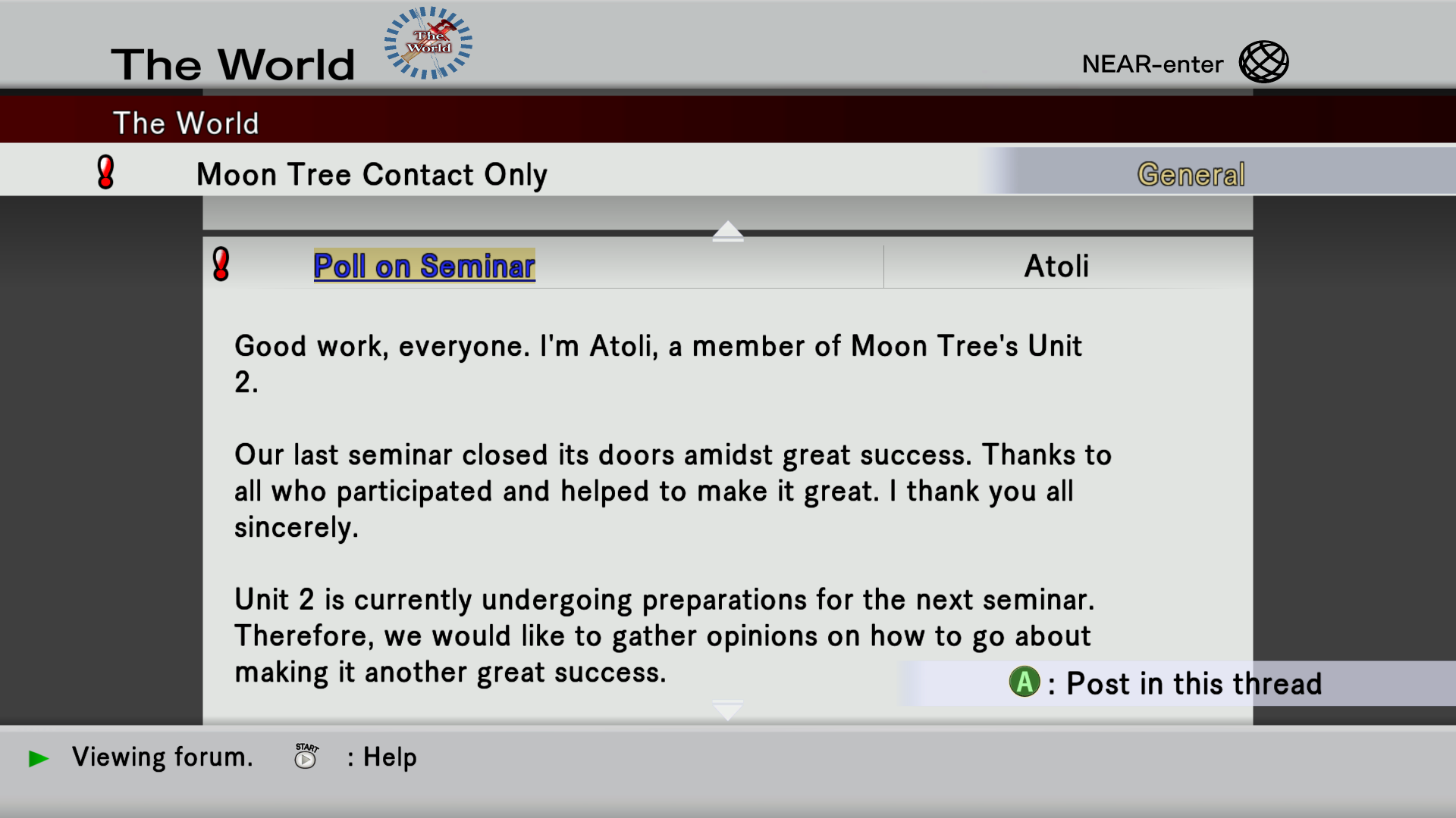 Something Atoli does for Moon Tree is apparently run uh..."Seminars"? in The World