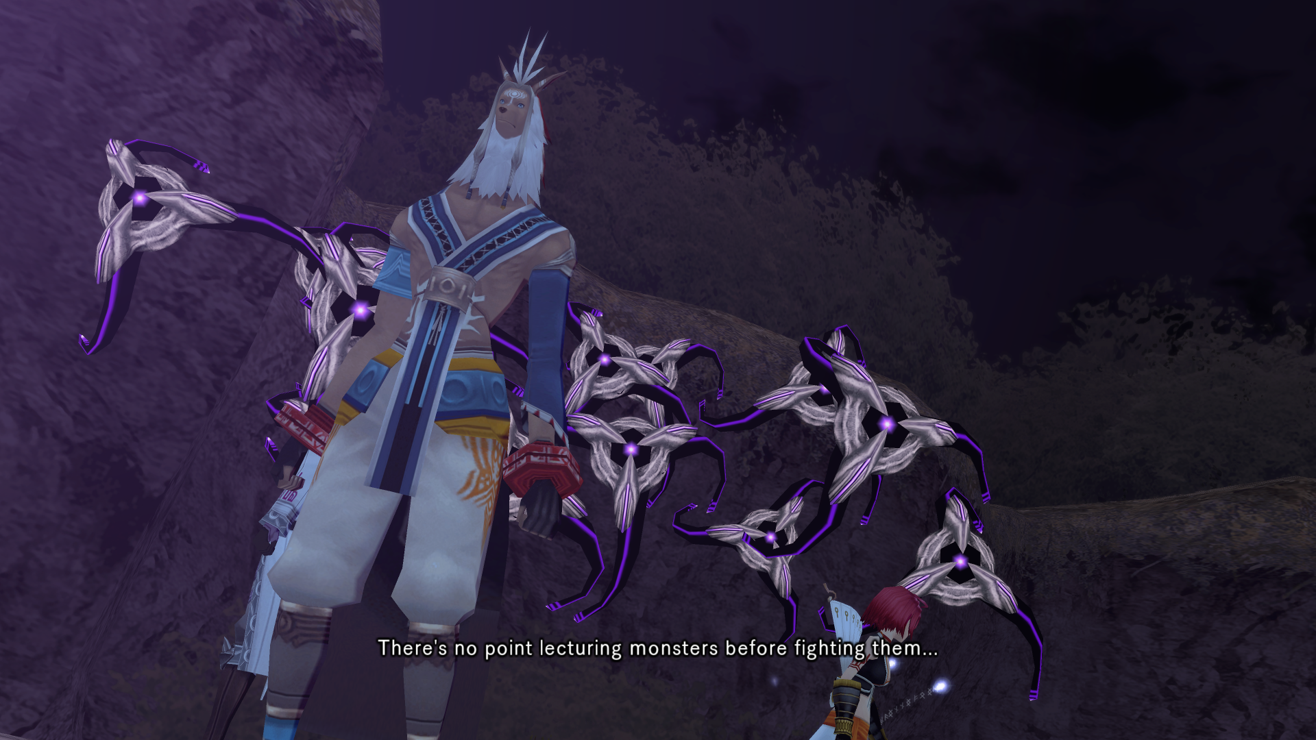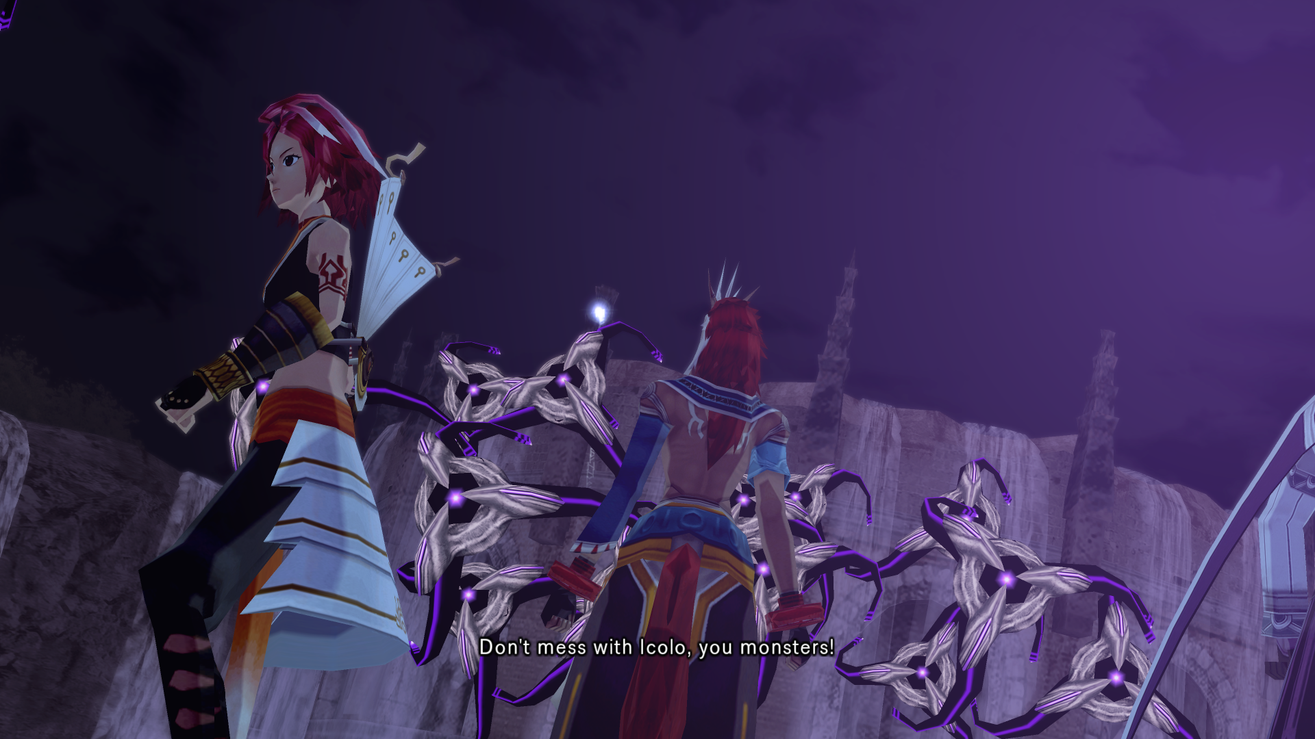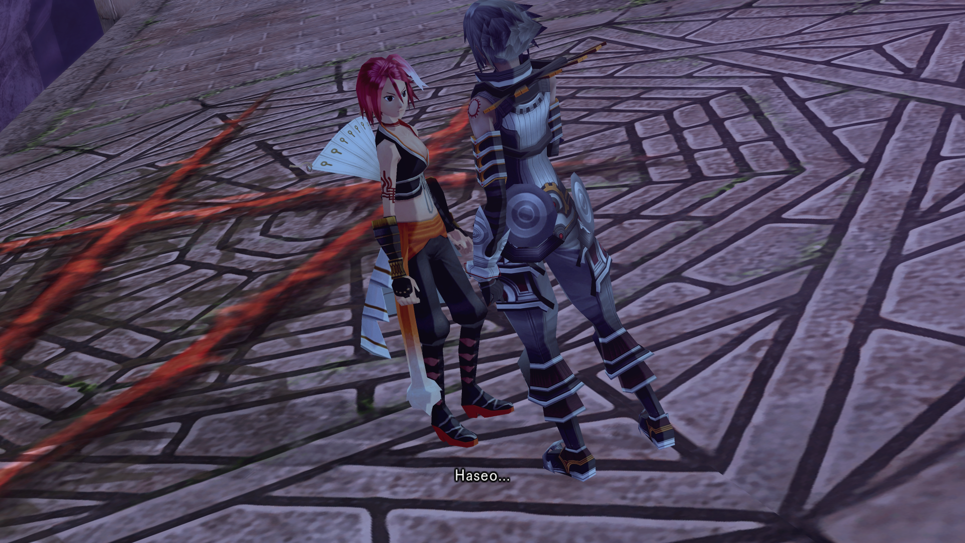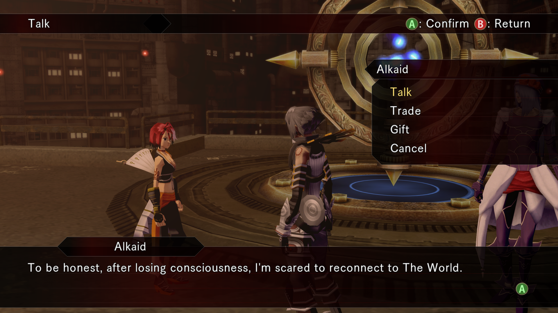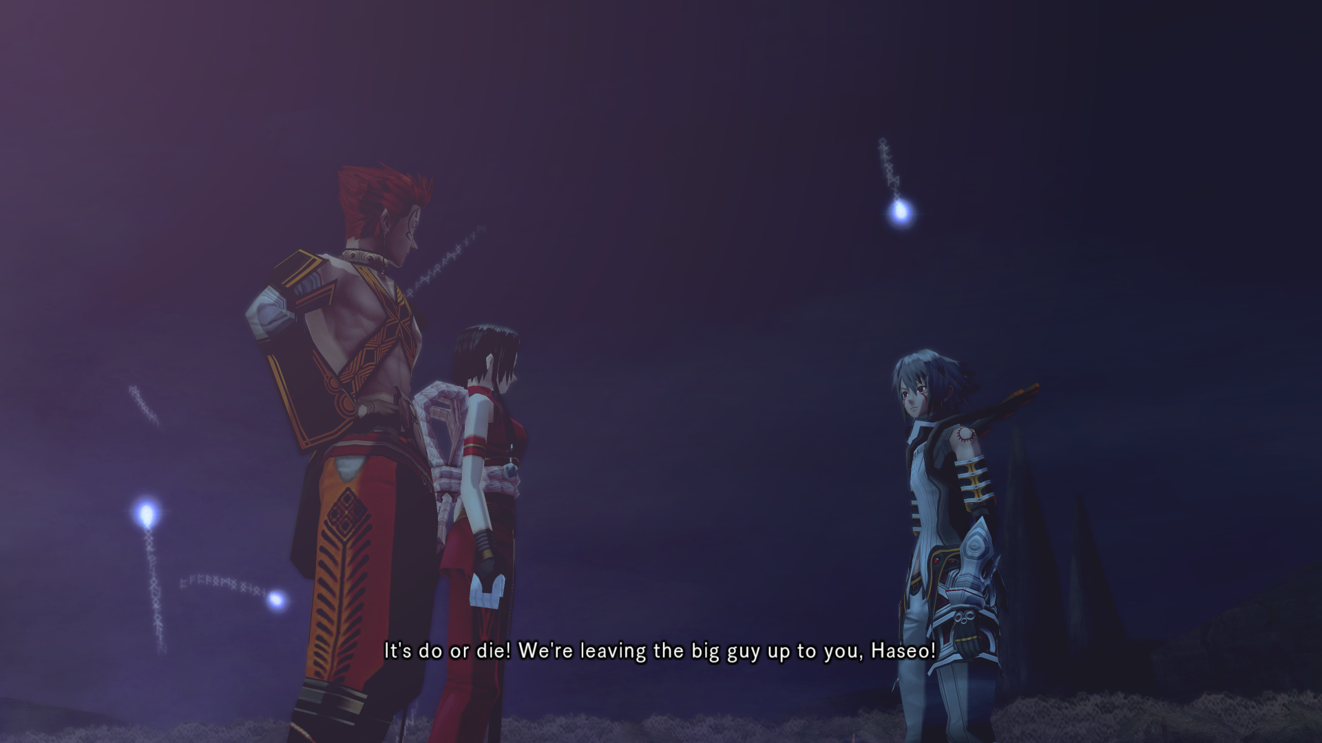 Alkaid hits haseo on the shoulder with an audible slap as she passes