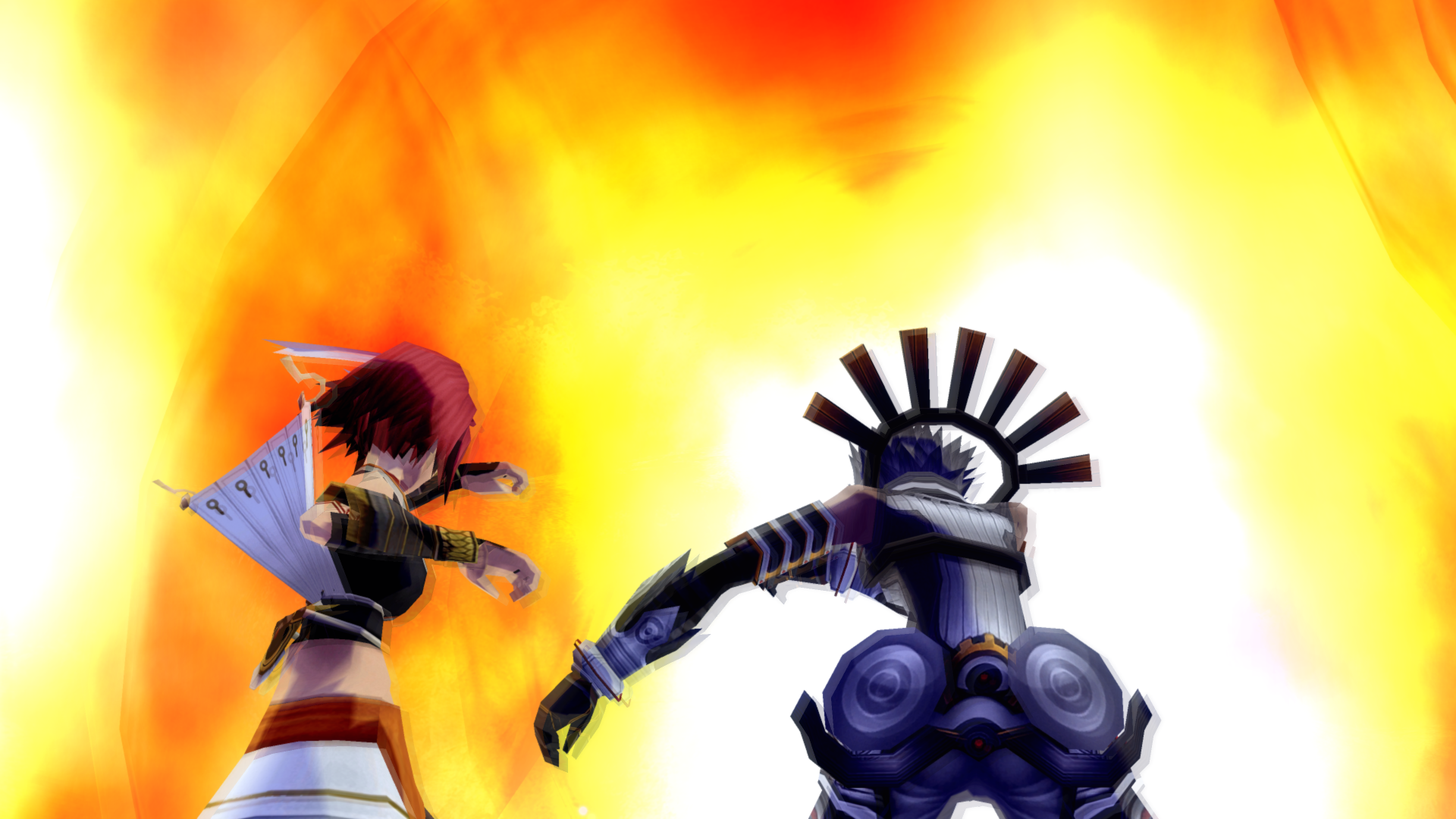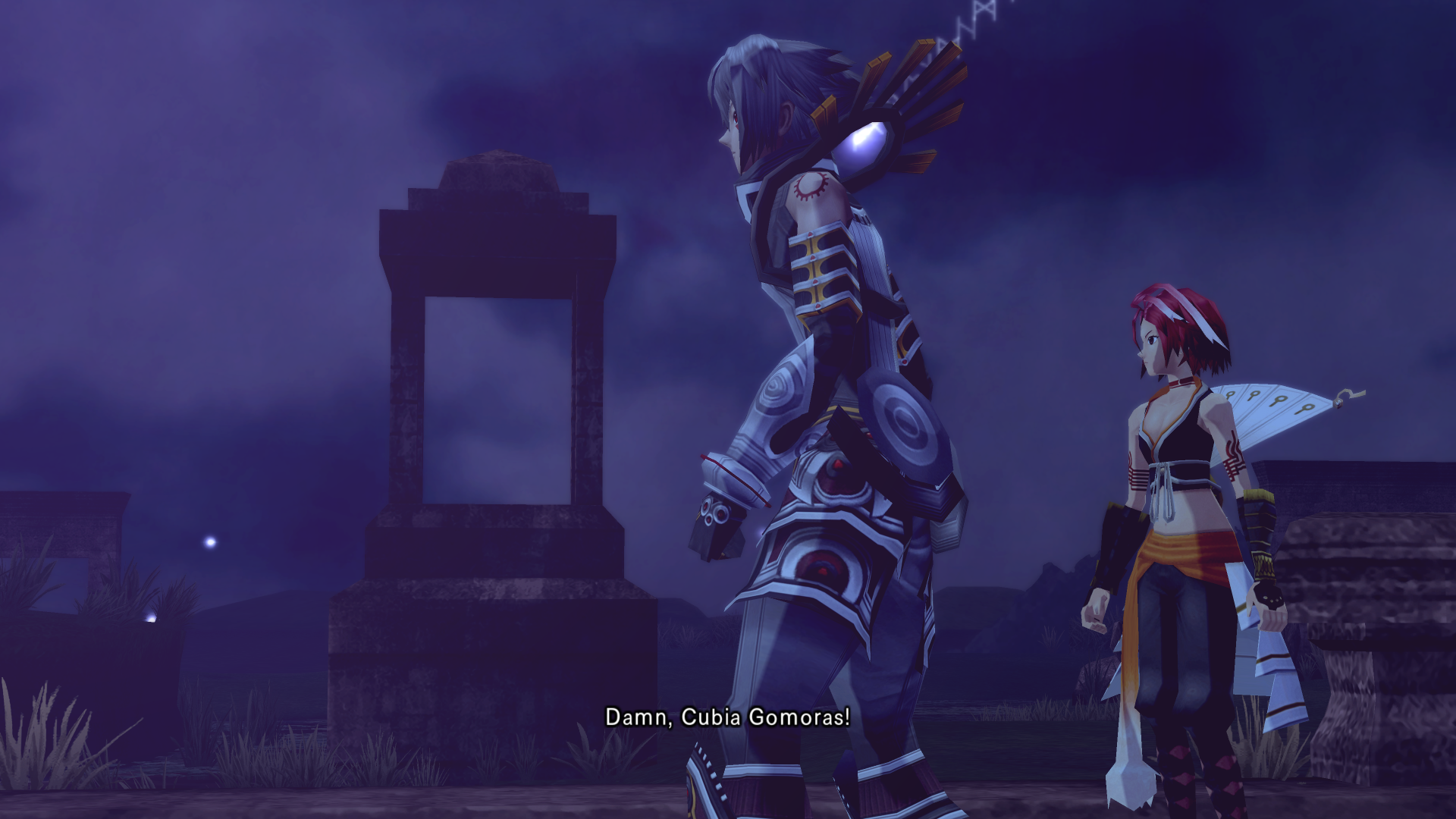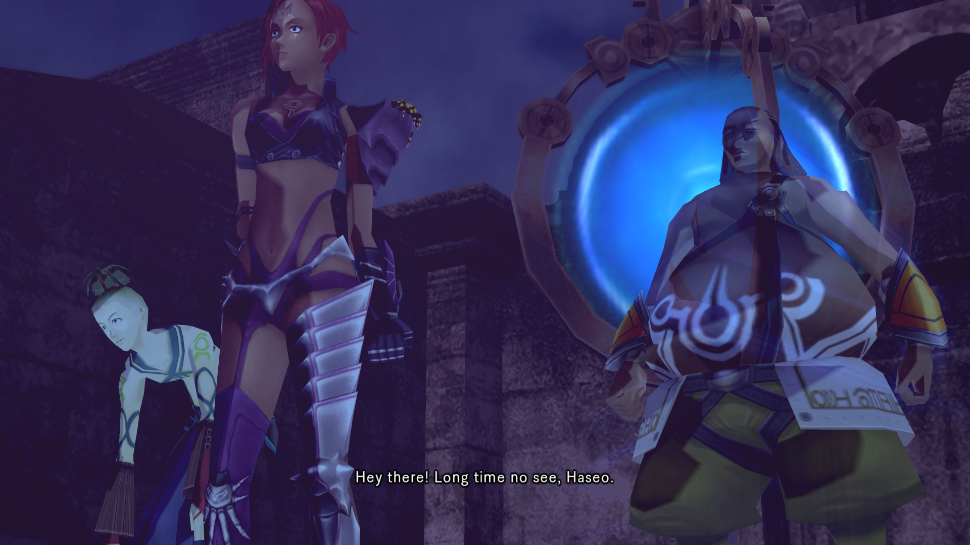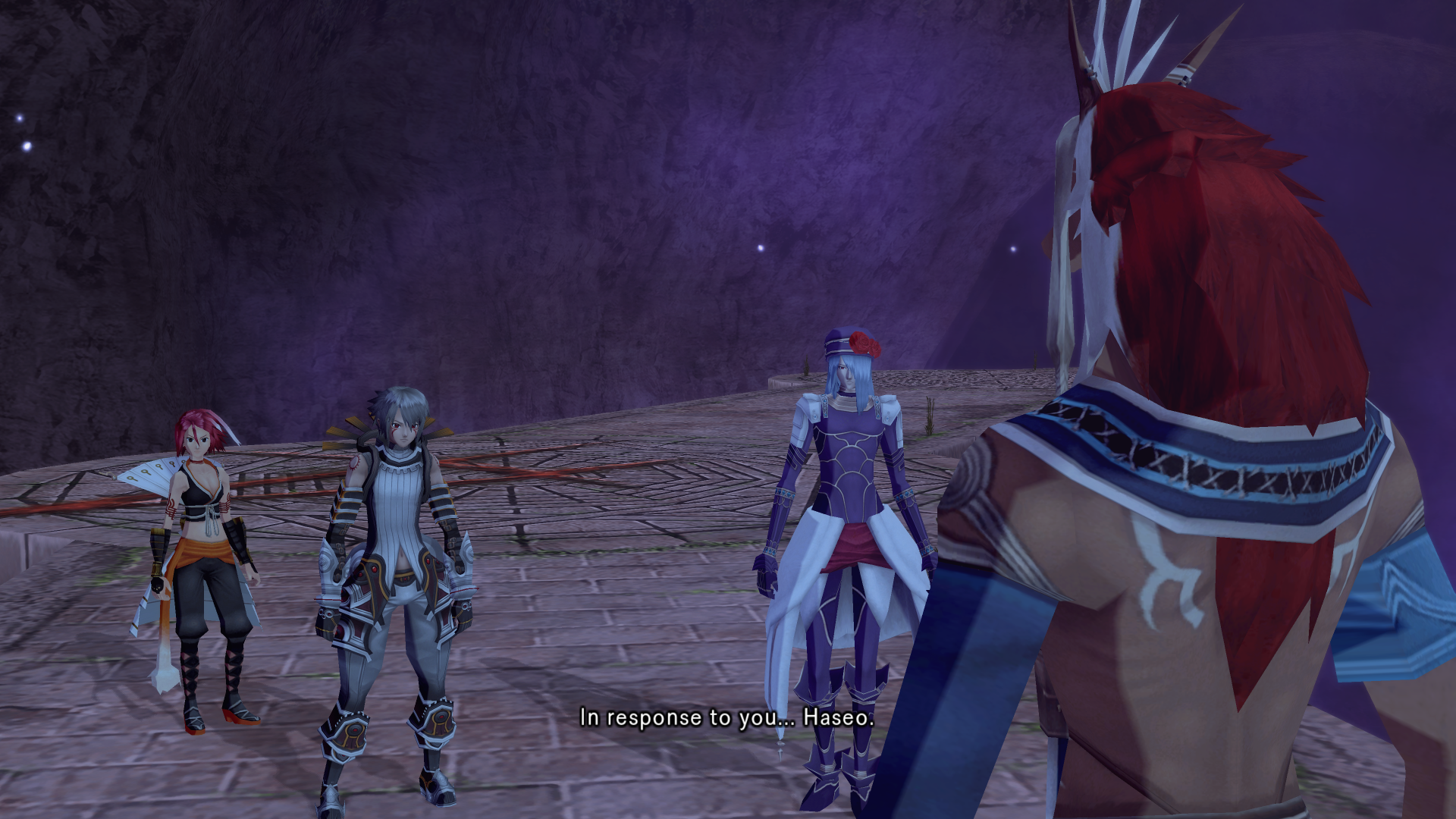 Alkaid hits haseo on the shoulder with an audible slap as she passes