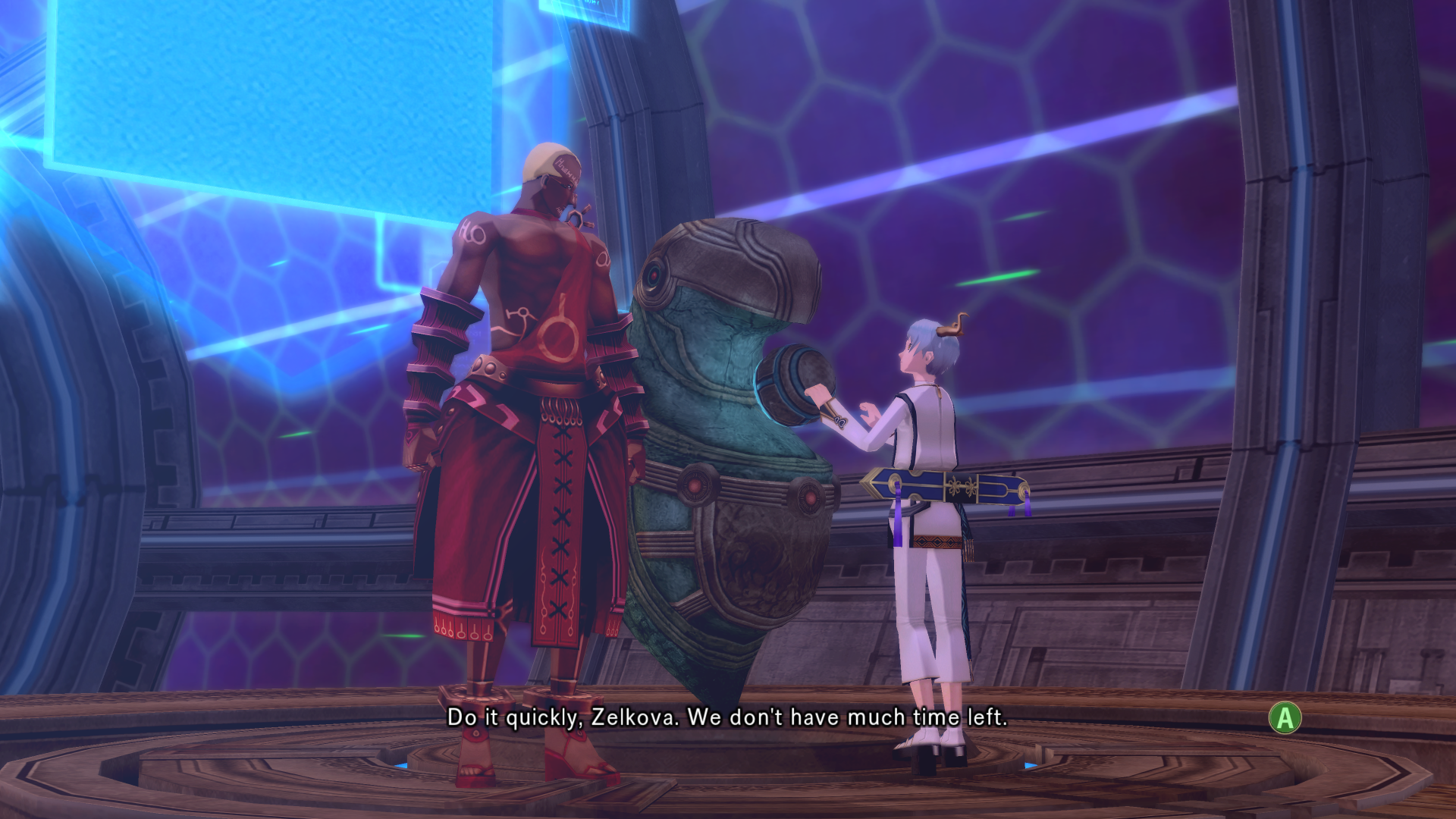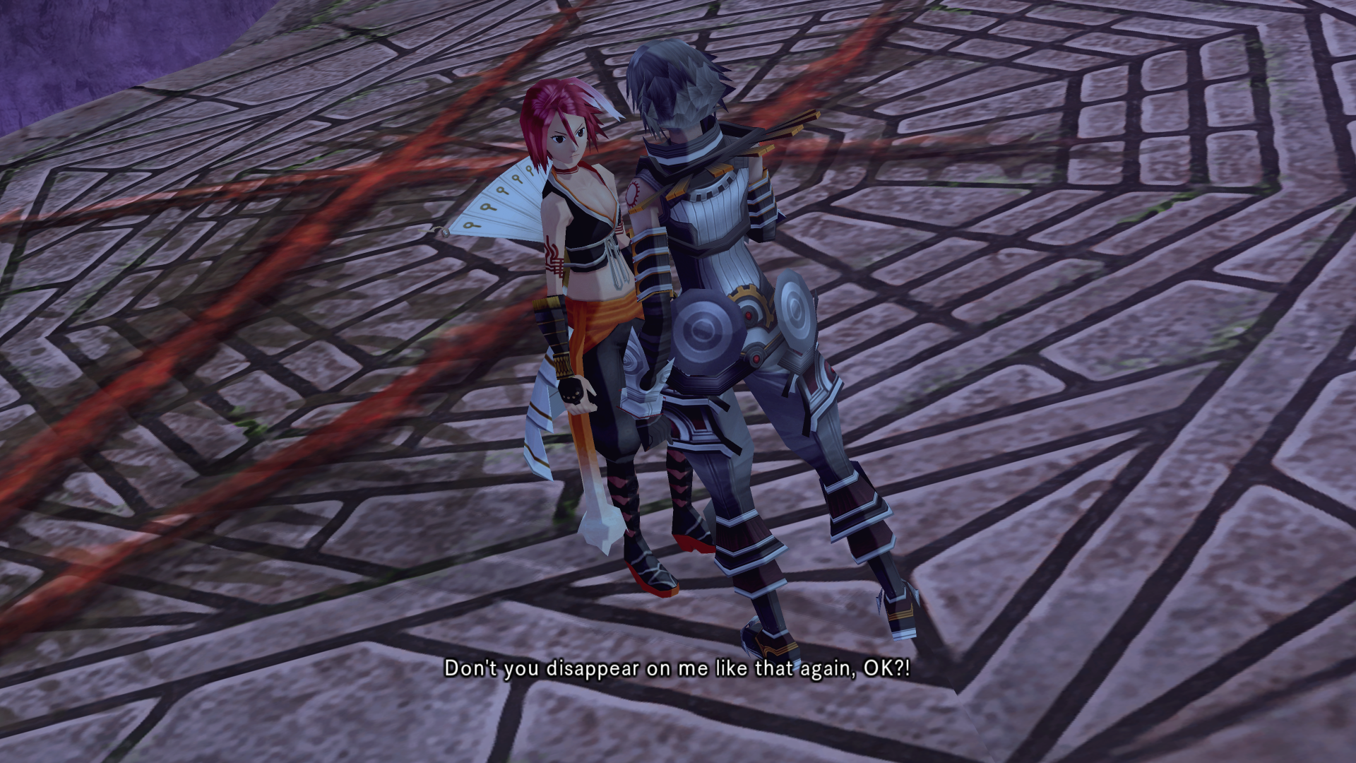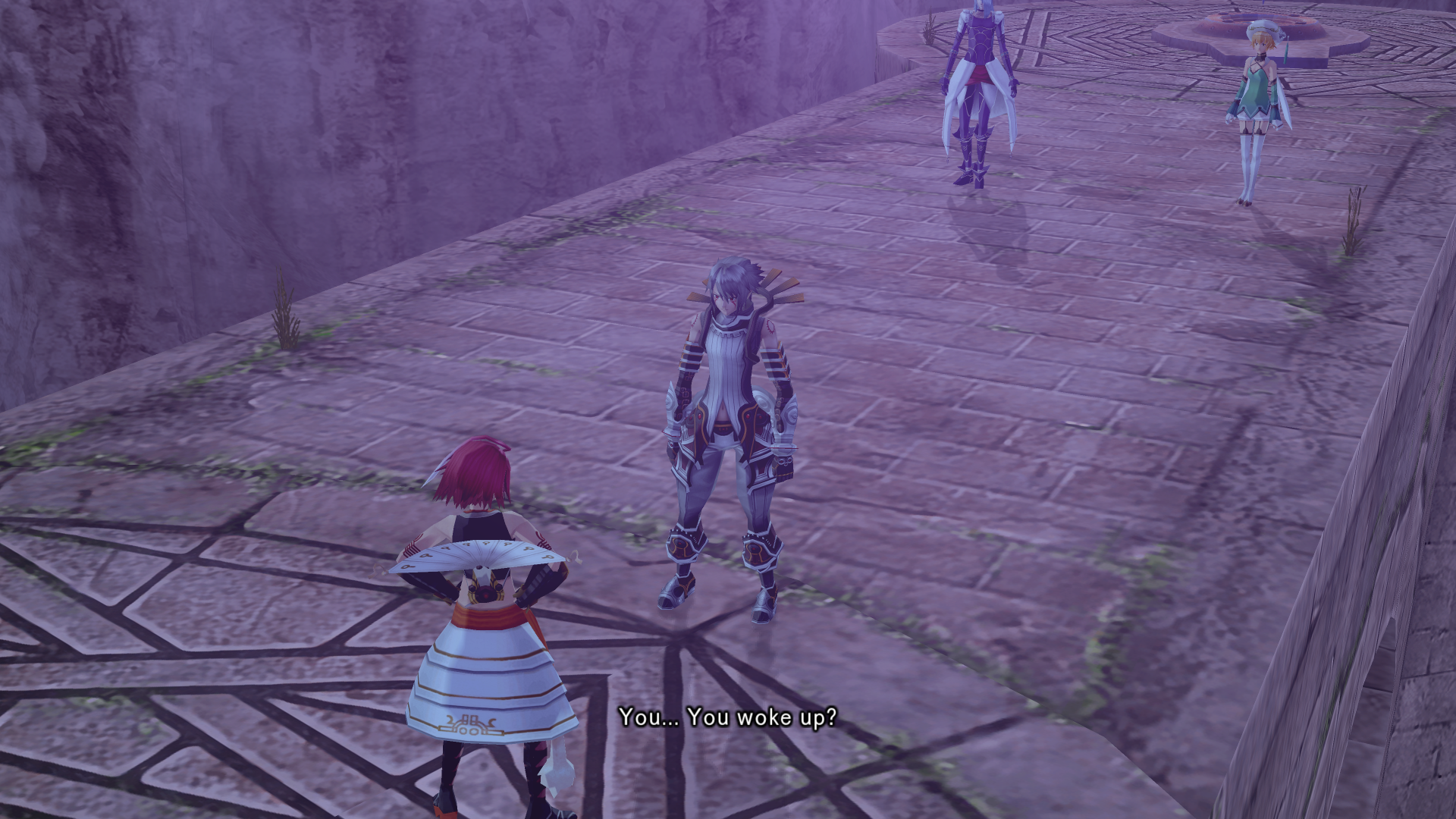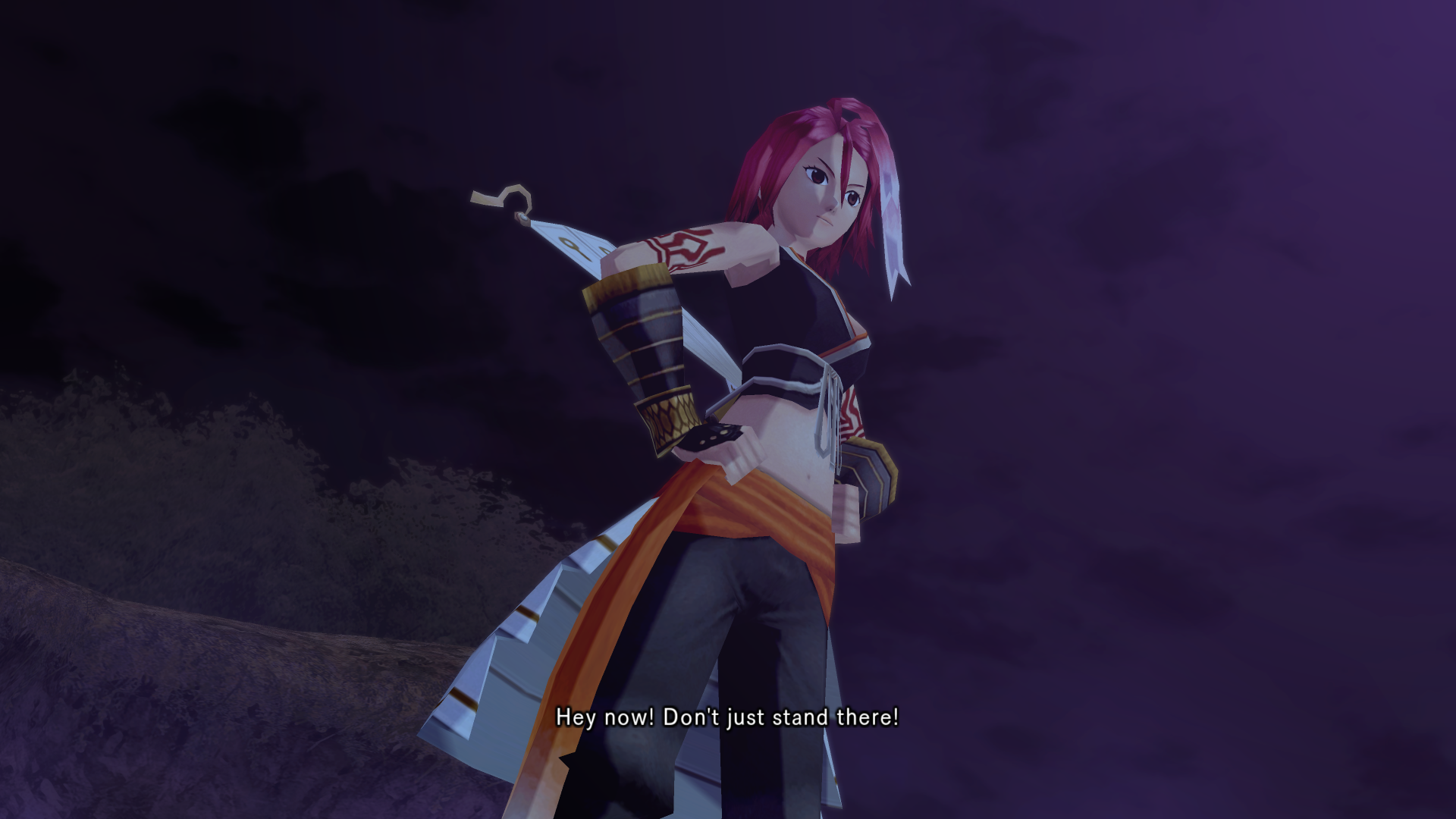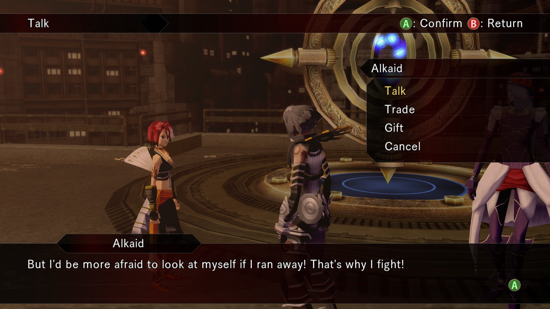 Alkaid hits haseo on the shoulder with an audible slap as she passes