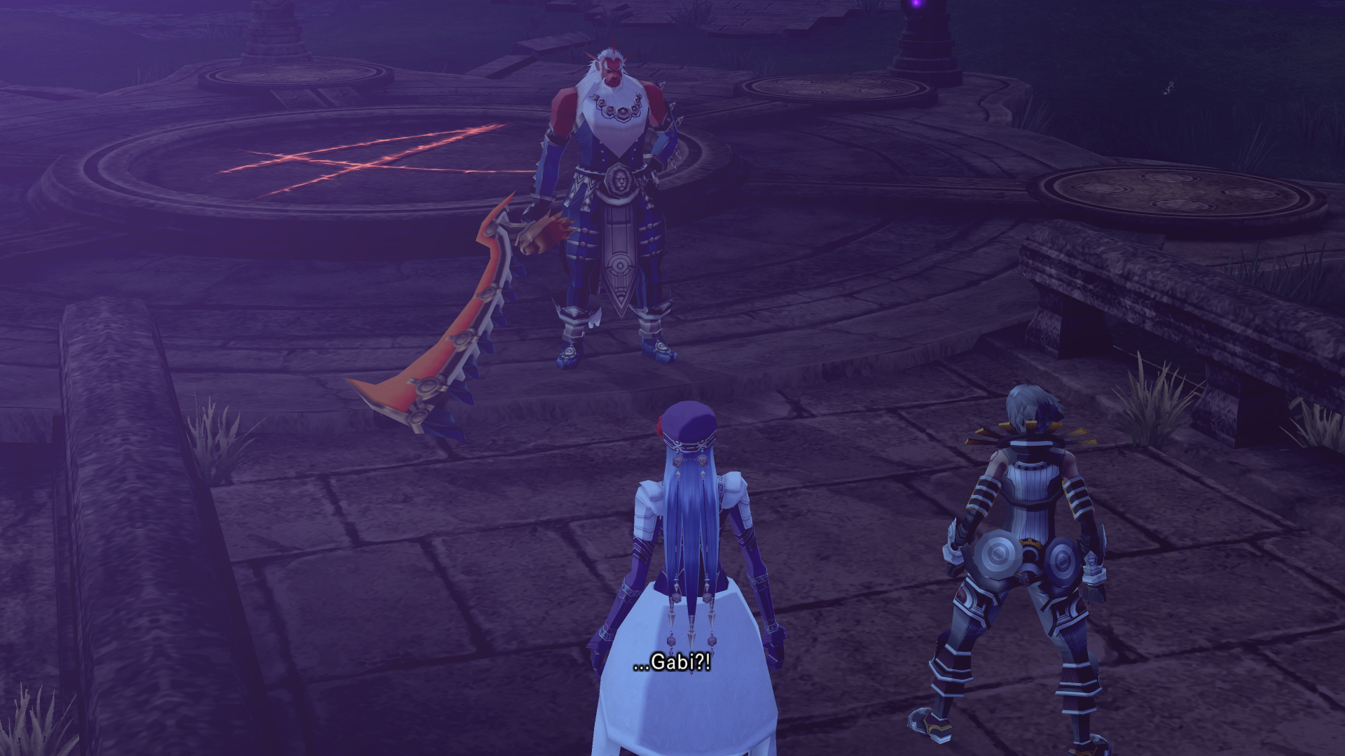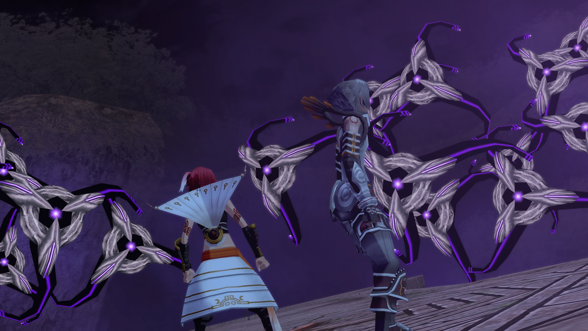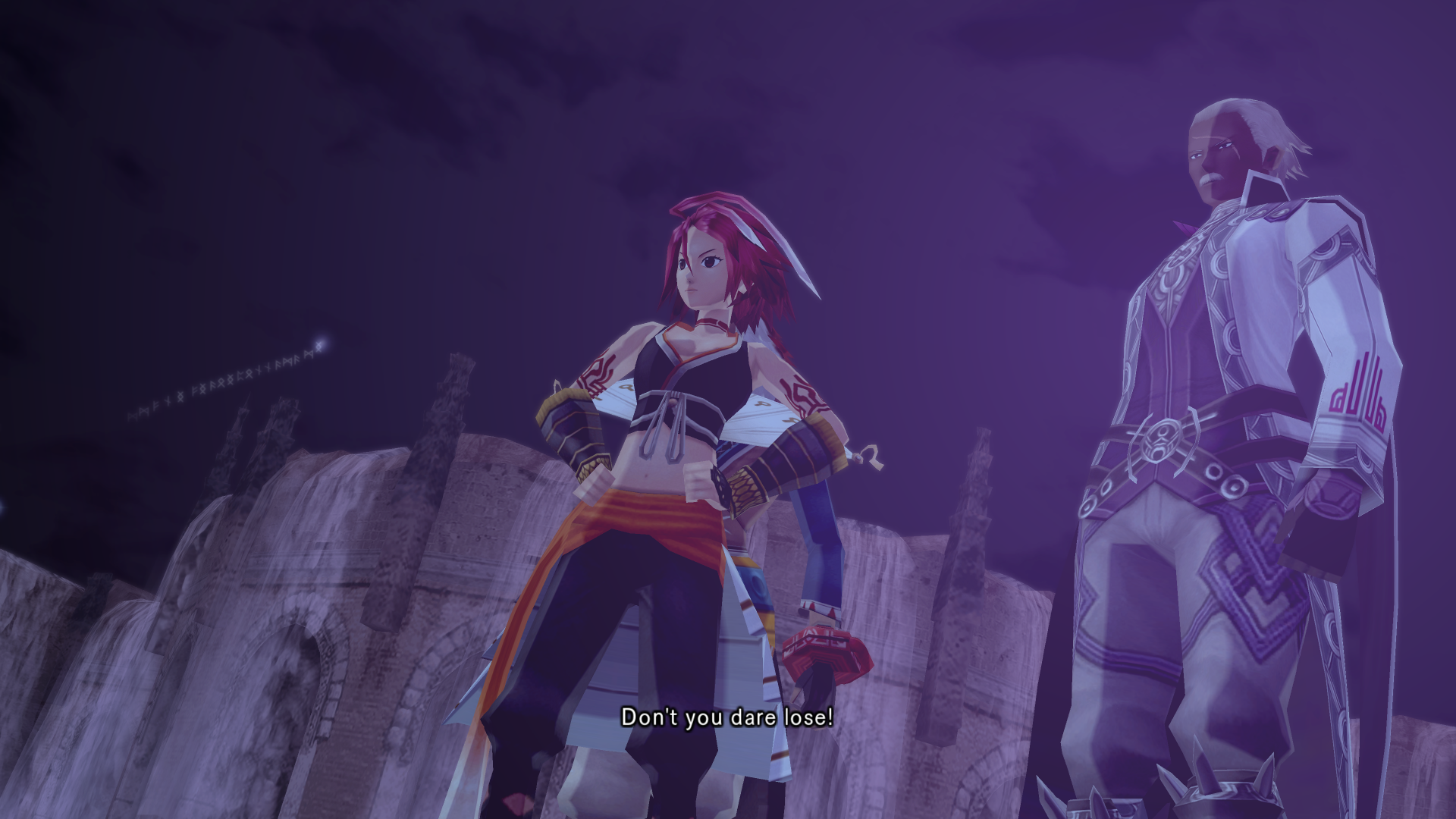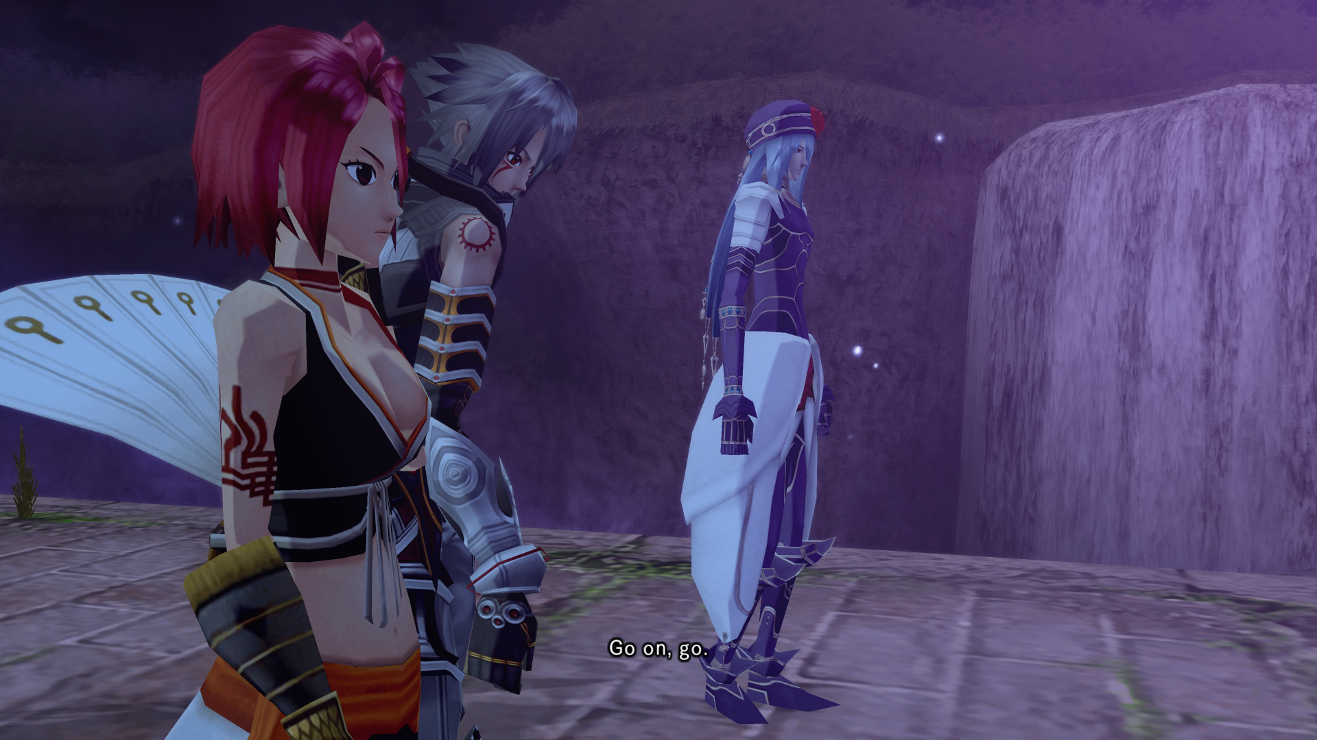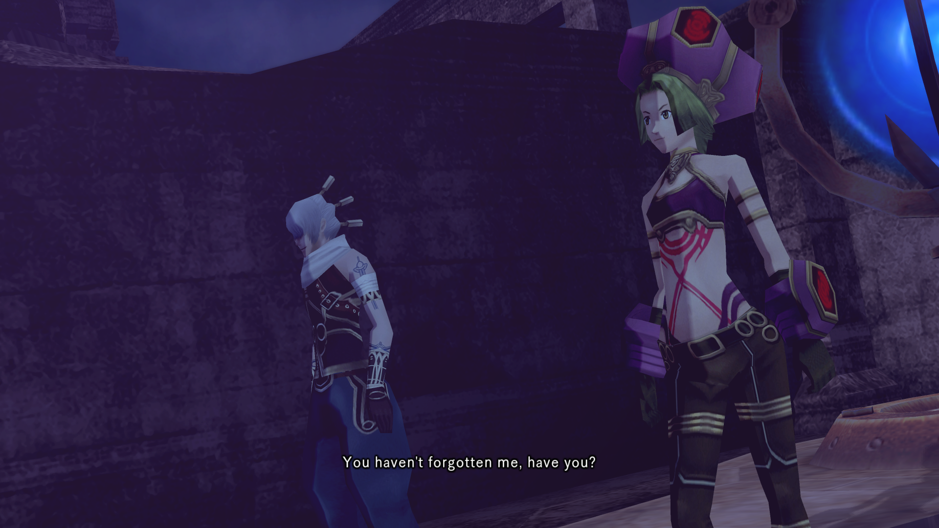 Alkaid hits haseo on the shoulder with an audible slap as she passes