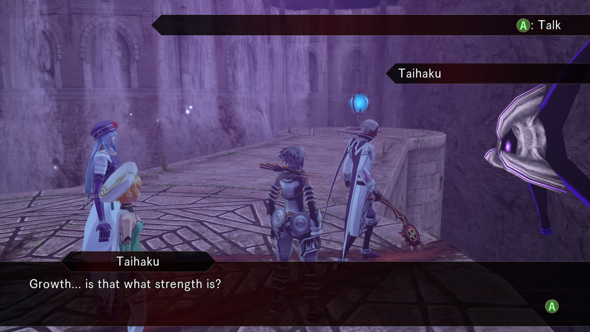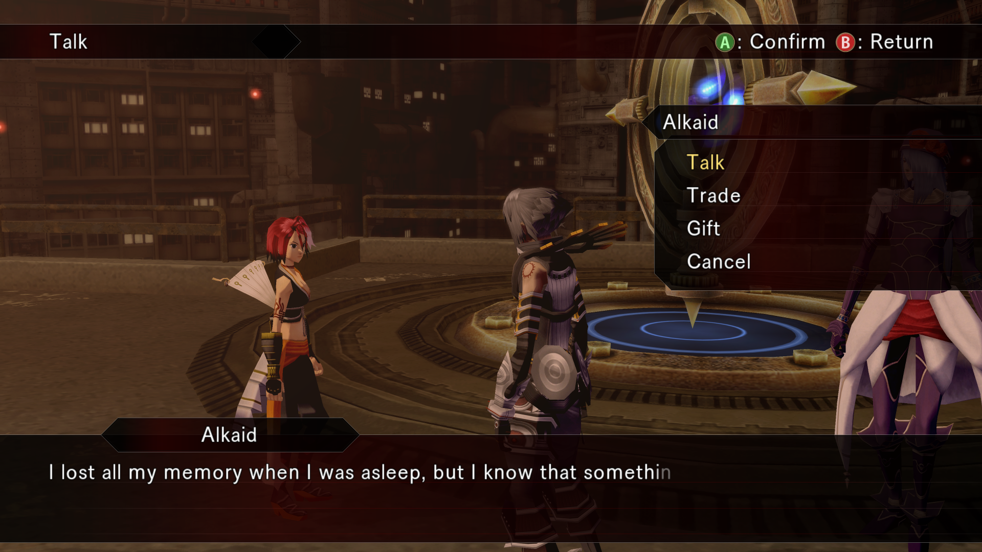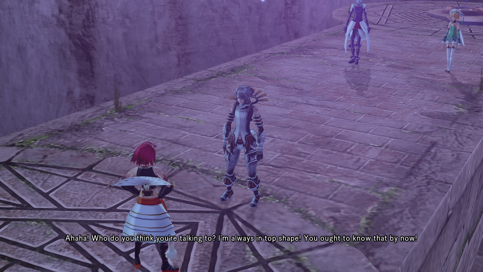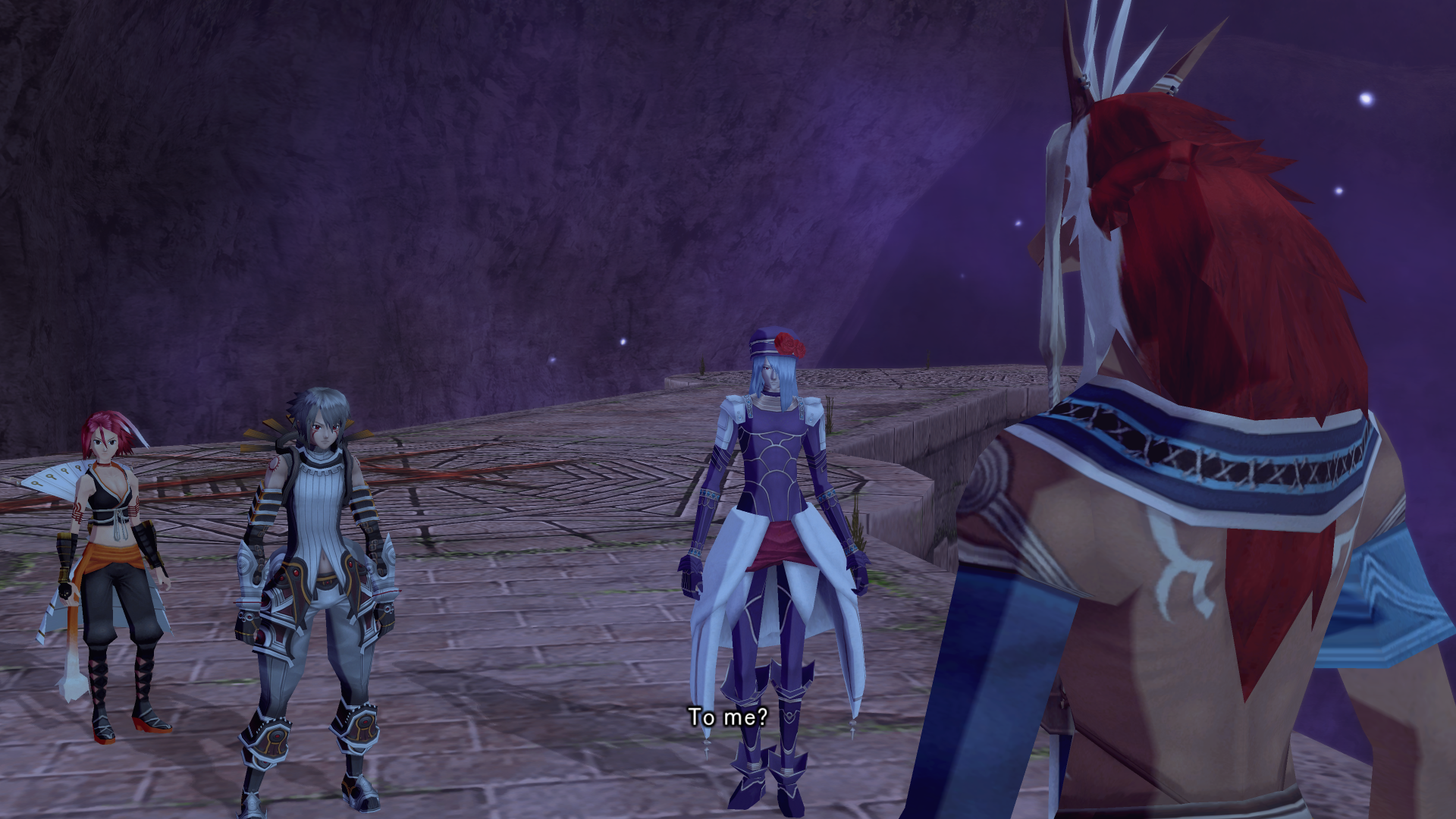 Alkaid hits haseo on the shoulder with an audible slap as she passes