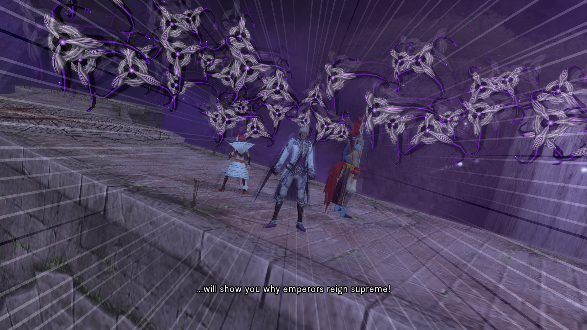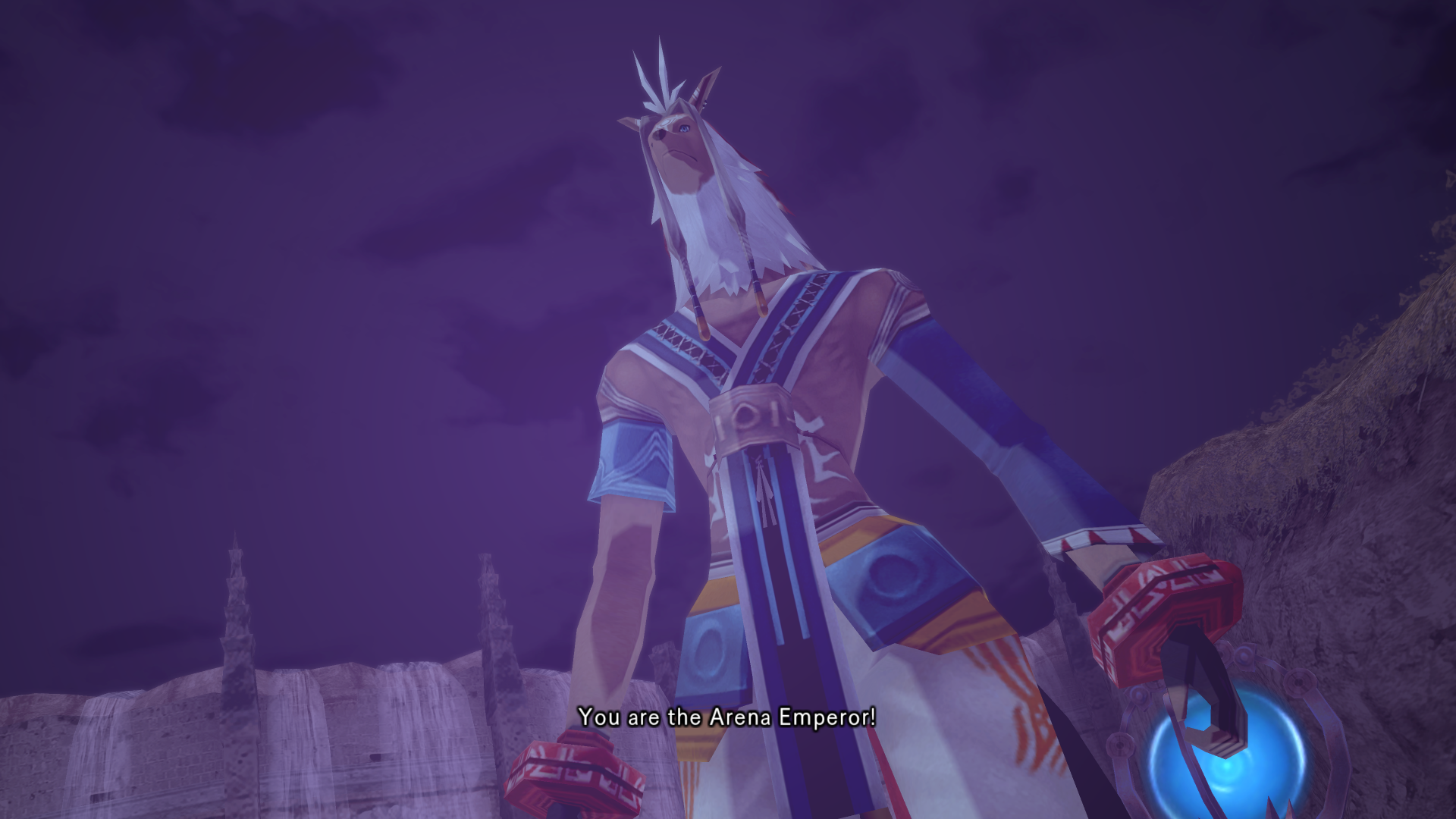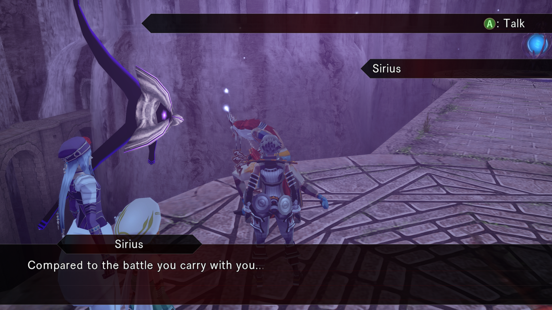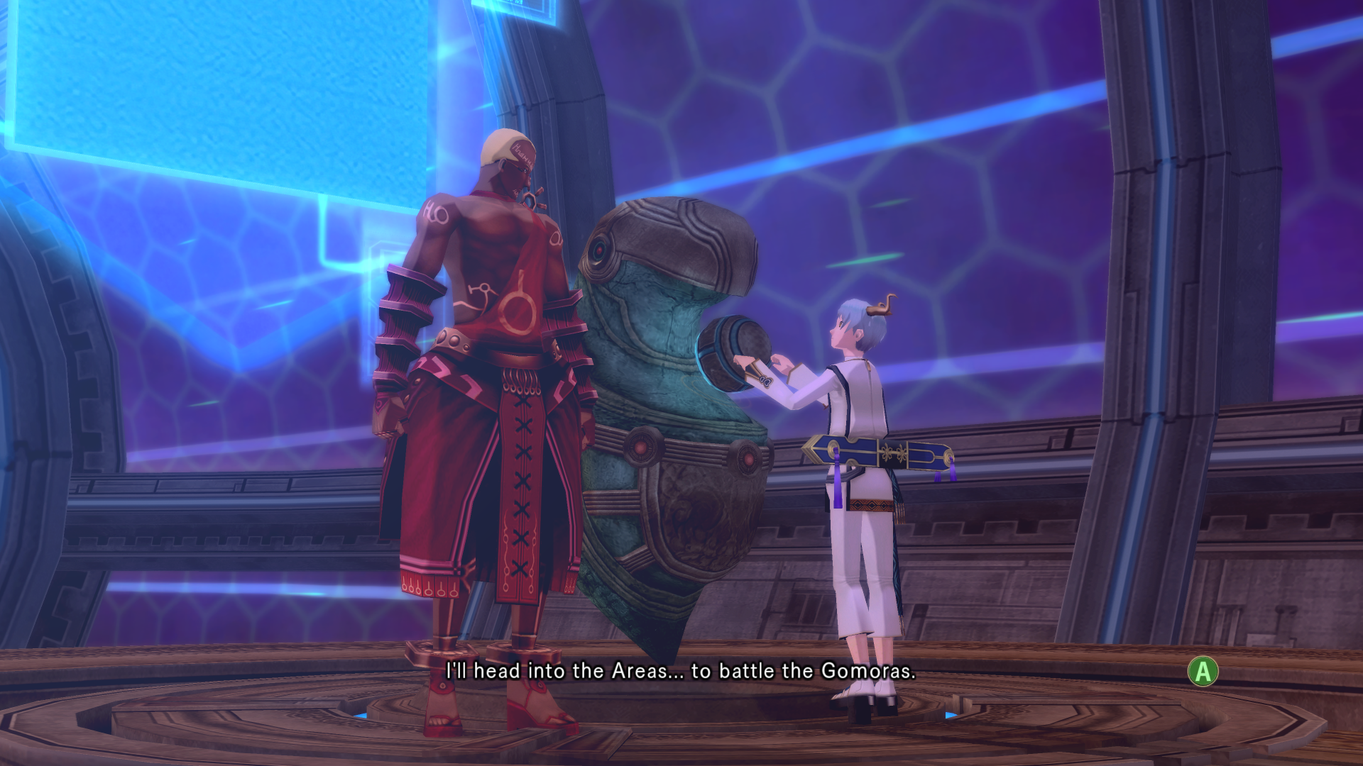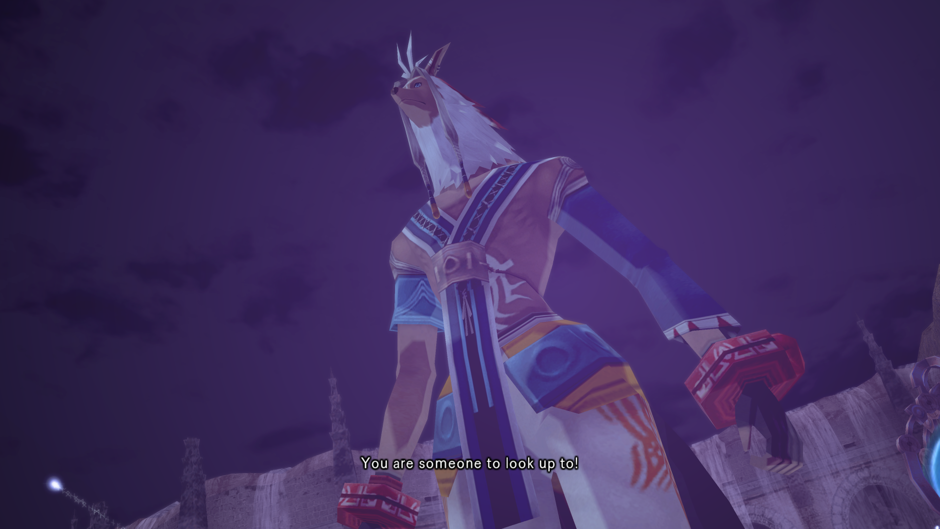 Alkaid hits haseo on the shoulder with an audible slap as she passes