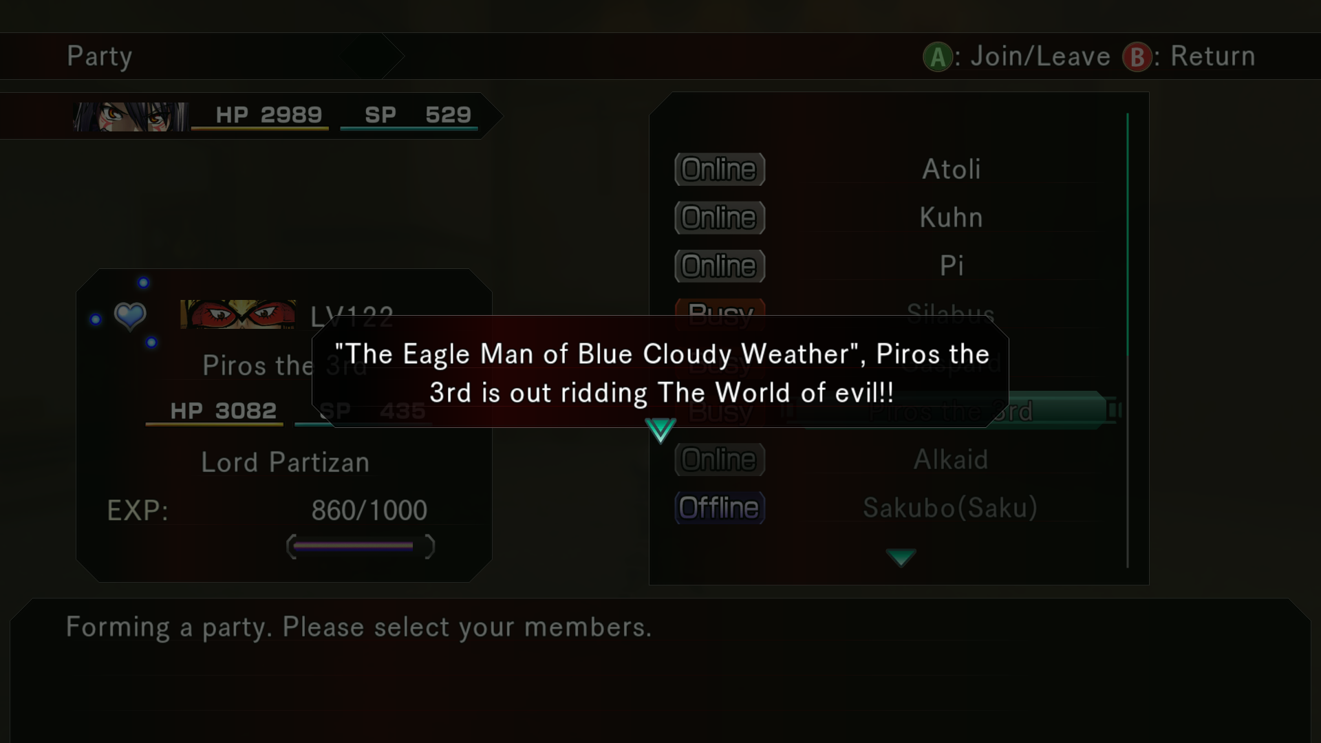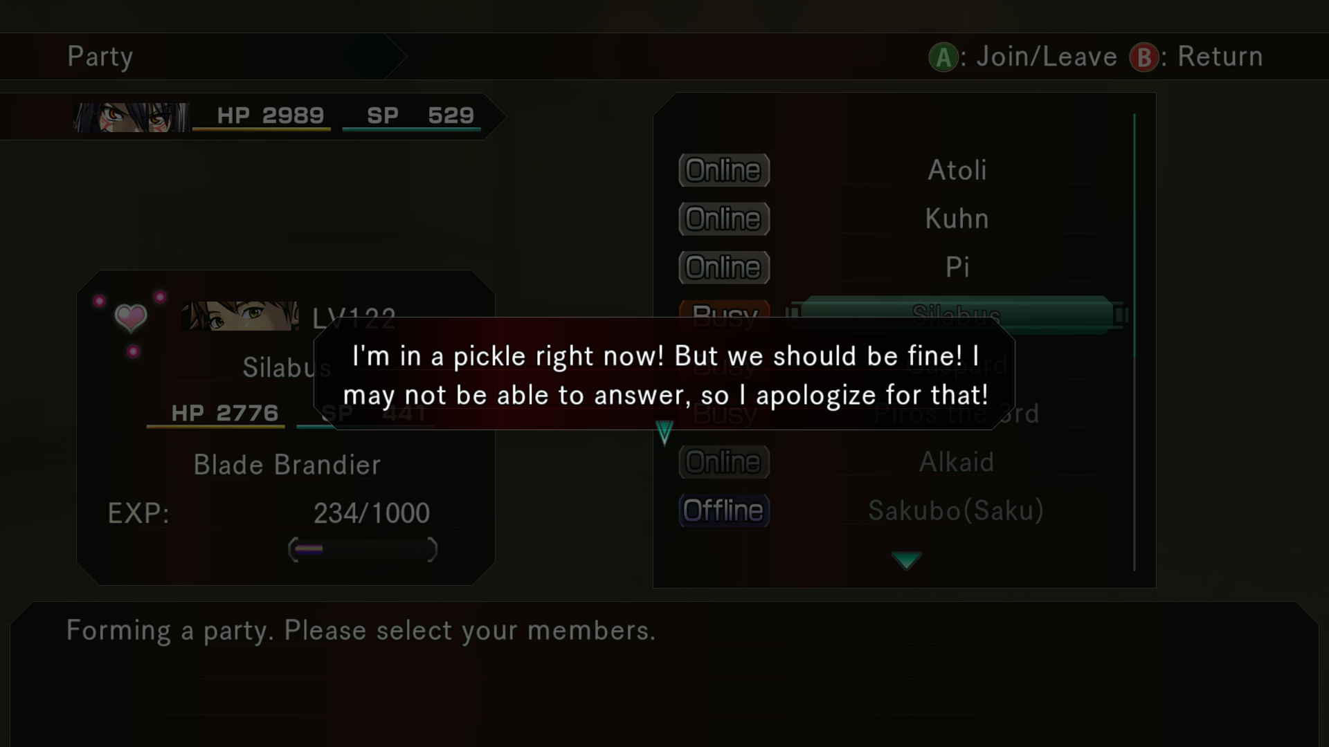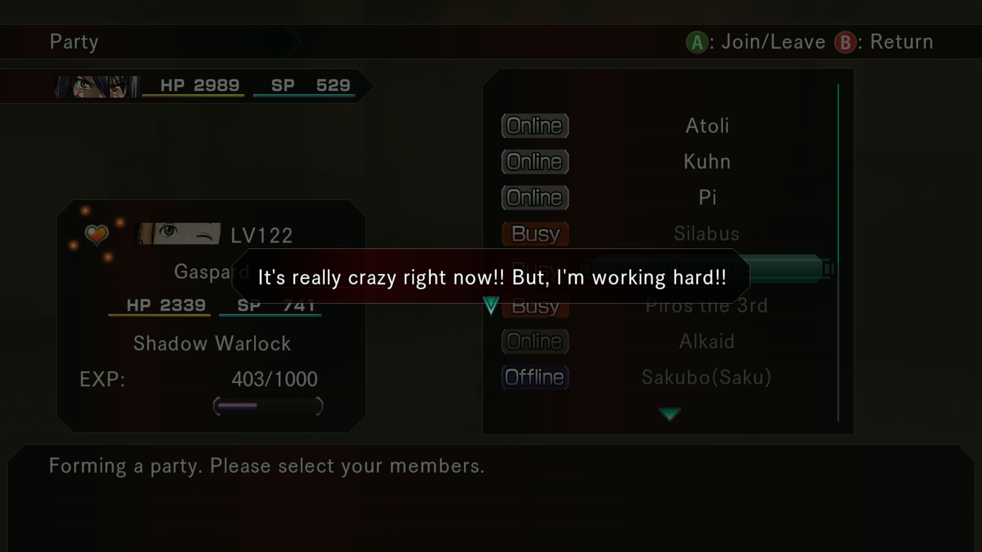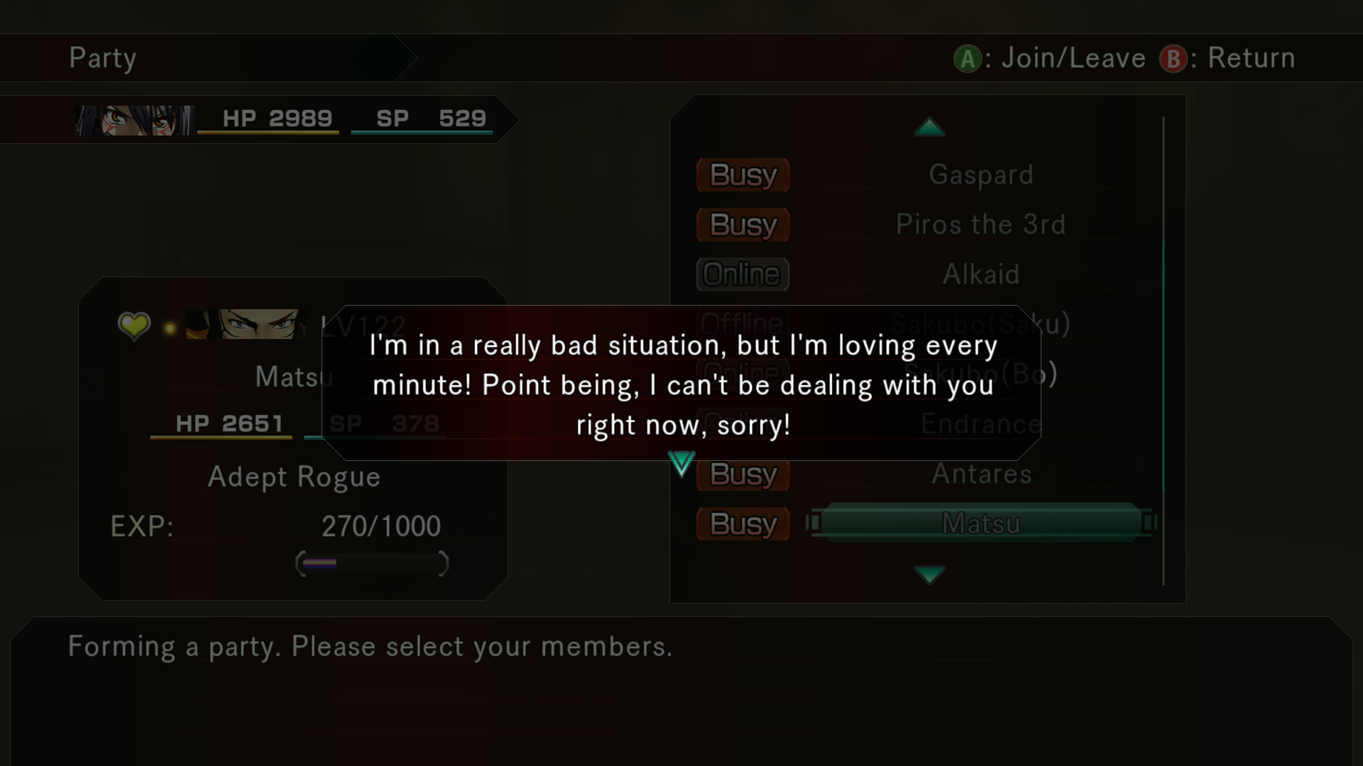 I can't change my party rn but we'll see when I finish this dungeon